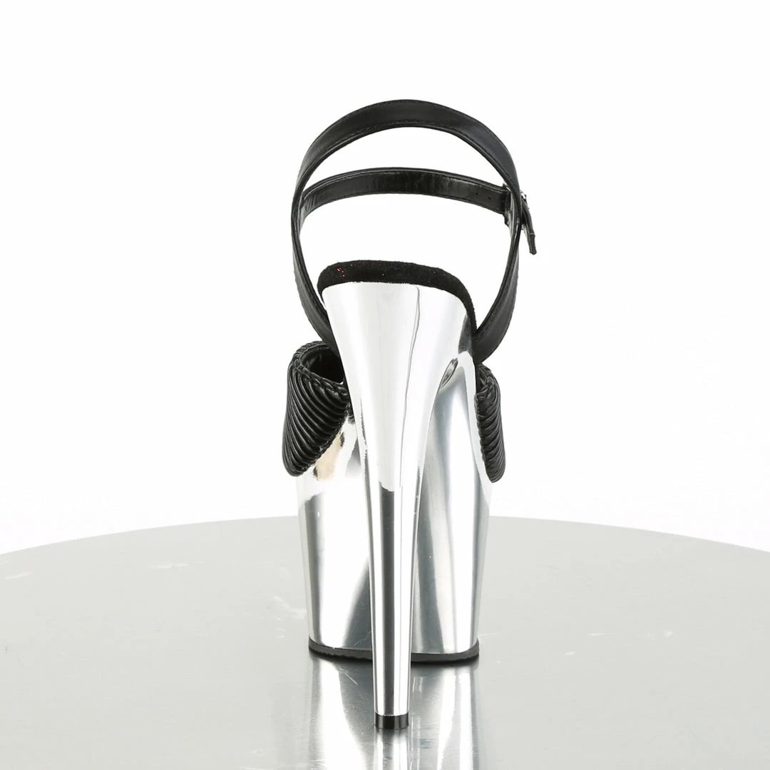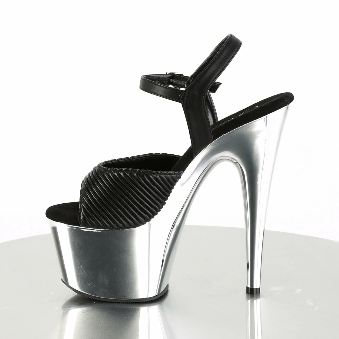 Pleaser Exotic Dancing ADORE-709 – Blk Quilted Faux Leather/Slv Chrome