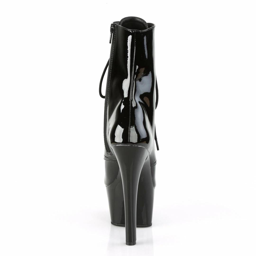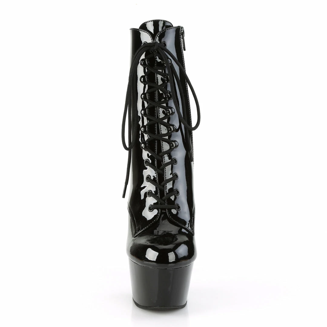 6″” (152mm) Stiletto Heel, 2 1/4″” (57mm) Platform Lace-Up Ankle Boot, Inside Zip Closure