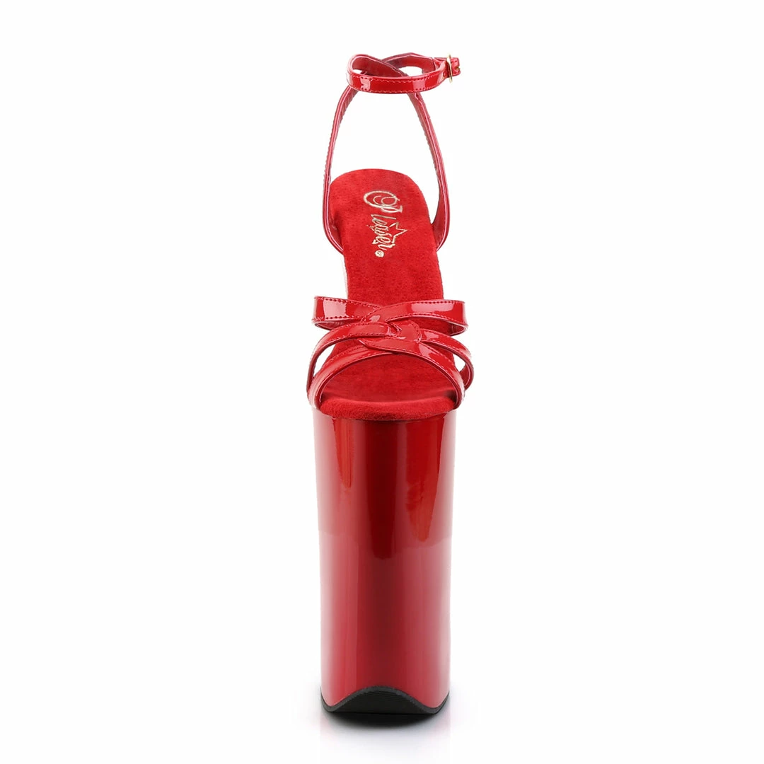 10″ (25.4cm) Heel, 6 1/4″ (15.9cm) Platform Wrap Around Ankle Strap Sandal Warning: Extreme High Heels. Not Recommended for Walking or Dancing.