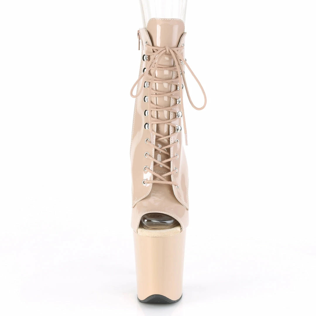 8″” (200mm) Heel, 4″” (100mm) Platform Peep Toe Lace-up Front Ankle Boot, Inside Zip Closure