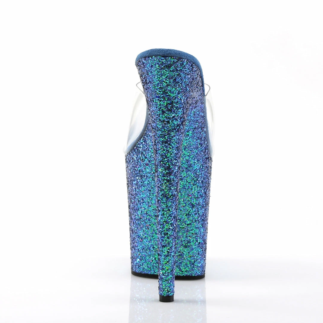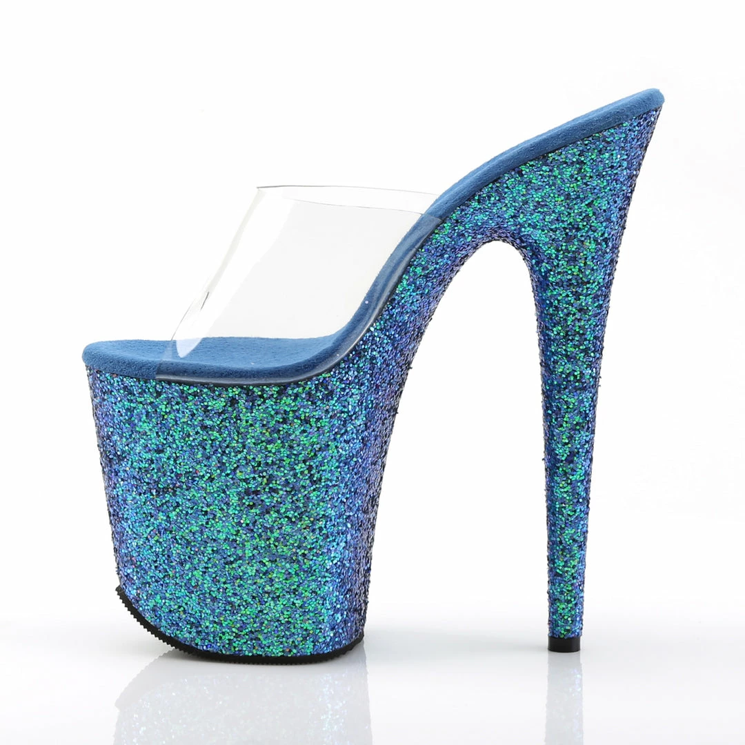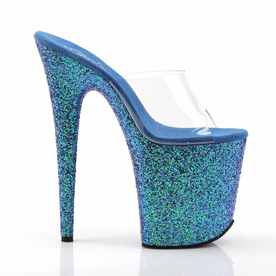8″” (20.3cm) Stiletto Heel, 4″” (10.2cm) Platform Slide Featuring Holographic Glitter Covering the Entire Platform