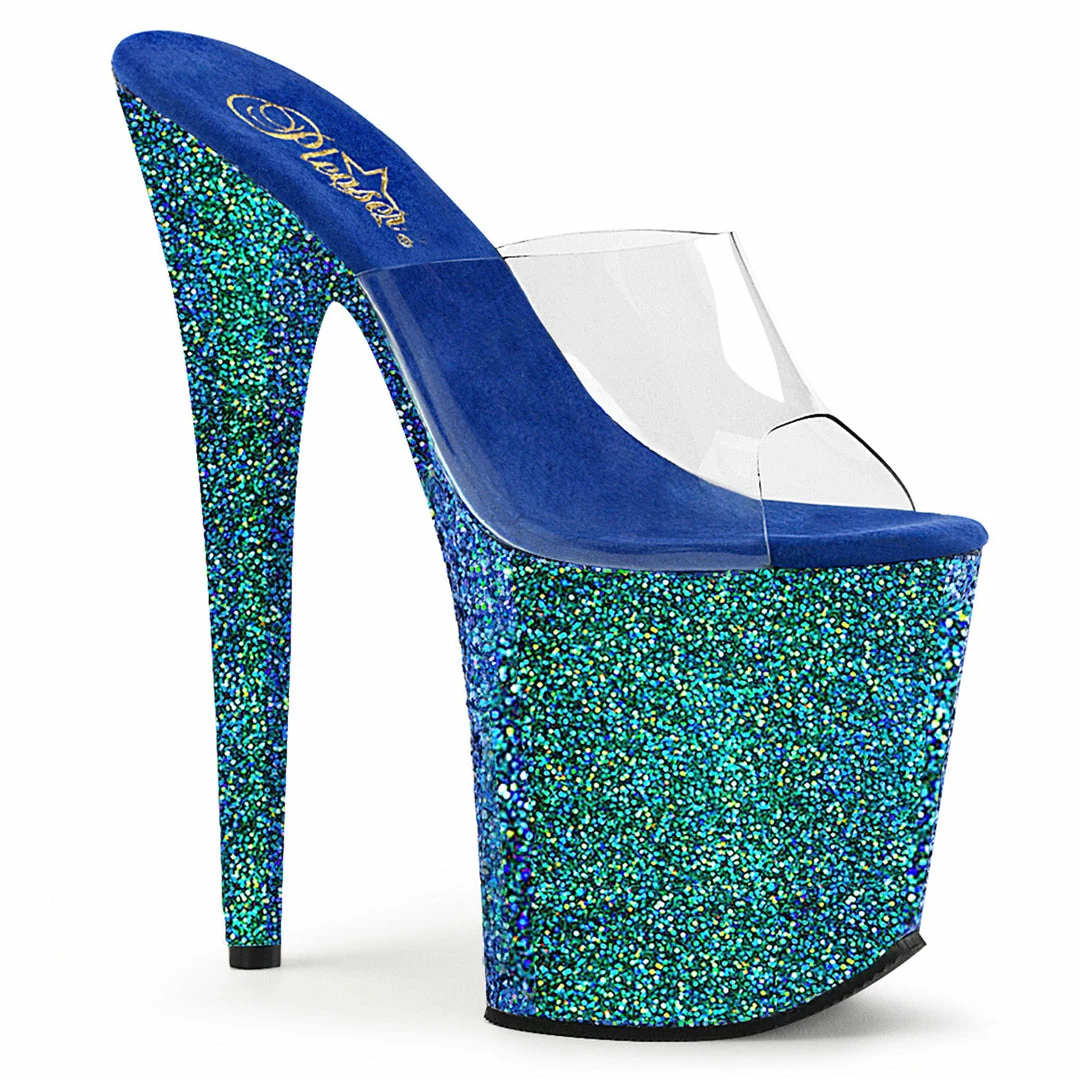 Pleaser Exotic Dancing FLAMINGO-801LG – Clr/Blue Holo Glitter