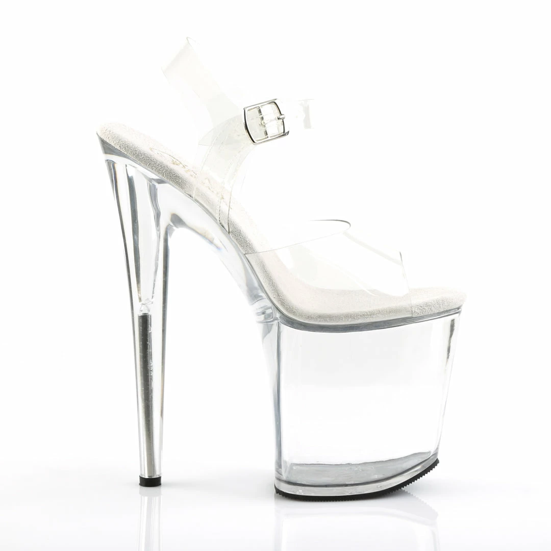 8″” (20.3cm) Stiletto Heel, 4″” (10.2cm) Platform Ankle Strap Sandal