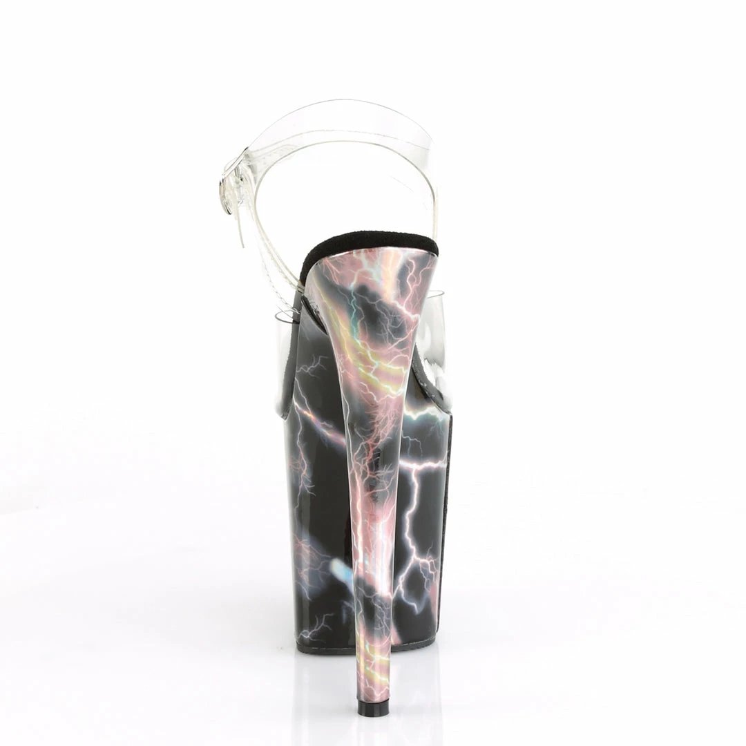 8″” (200mm) Heel, 4″” (100mm) Platform Ankle Strap Sandal Featuring Holographic Lightning Bolt Print Wrapped Platform Bottom