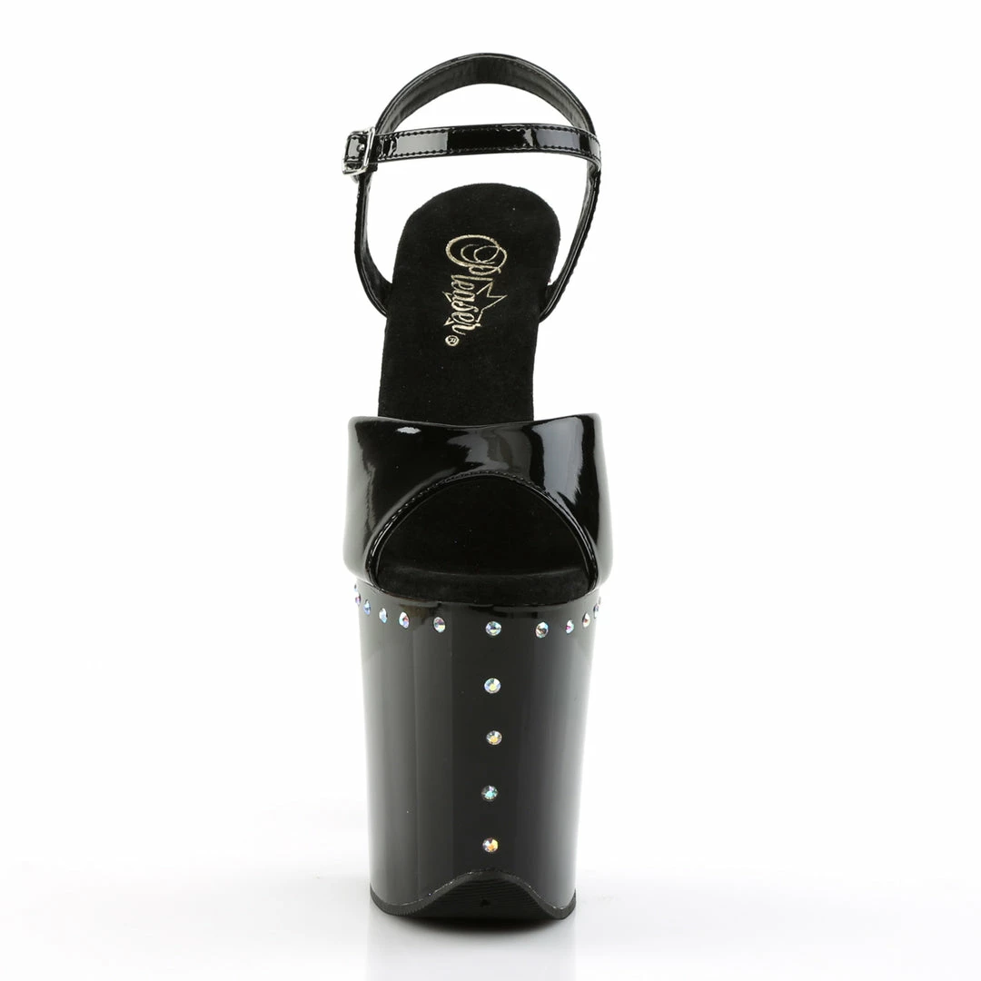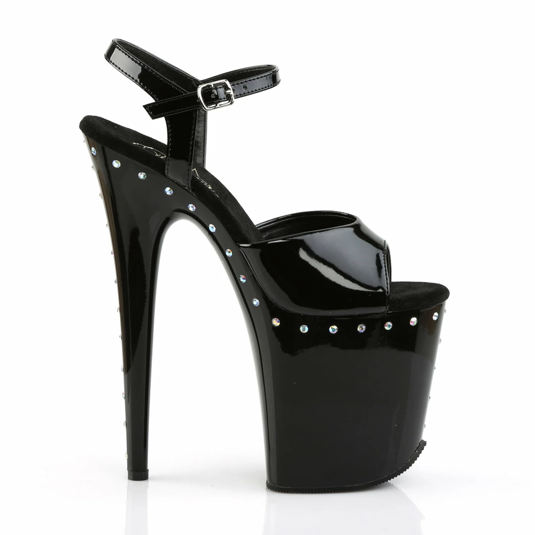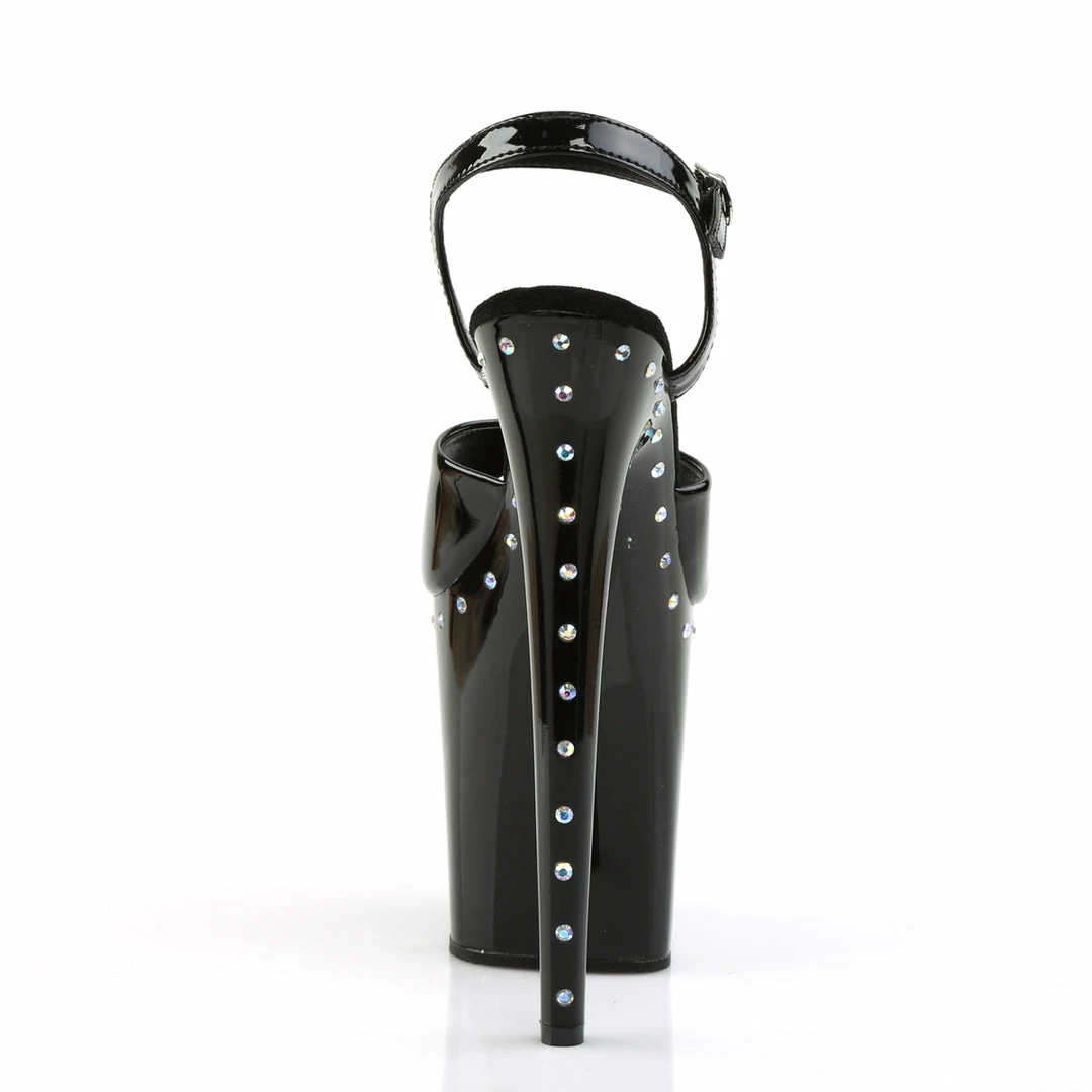 8″” (20.3cm) Stiletto Heel, 4″” (10.2cm) Platform Ankle Strap Sandal Featuring AB Lined Rhinestones on the Platform