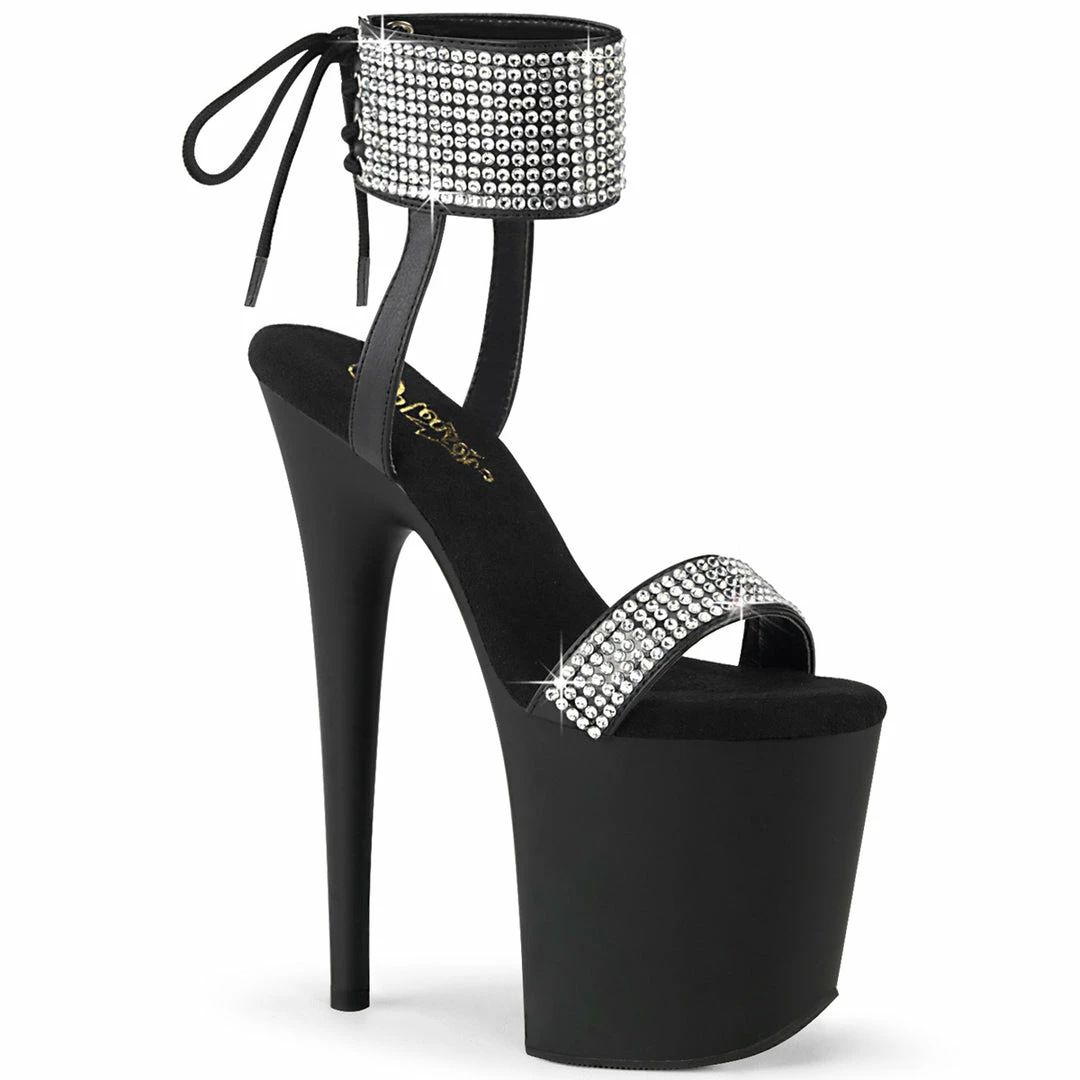 8″” (200mm) Heel, 4″” (100mm) Platform Back Tie Sandal Featuring Rhinestones Embellished Ankle Cuff & Toe Strap