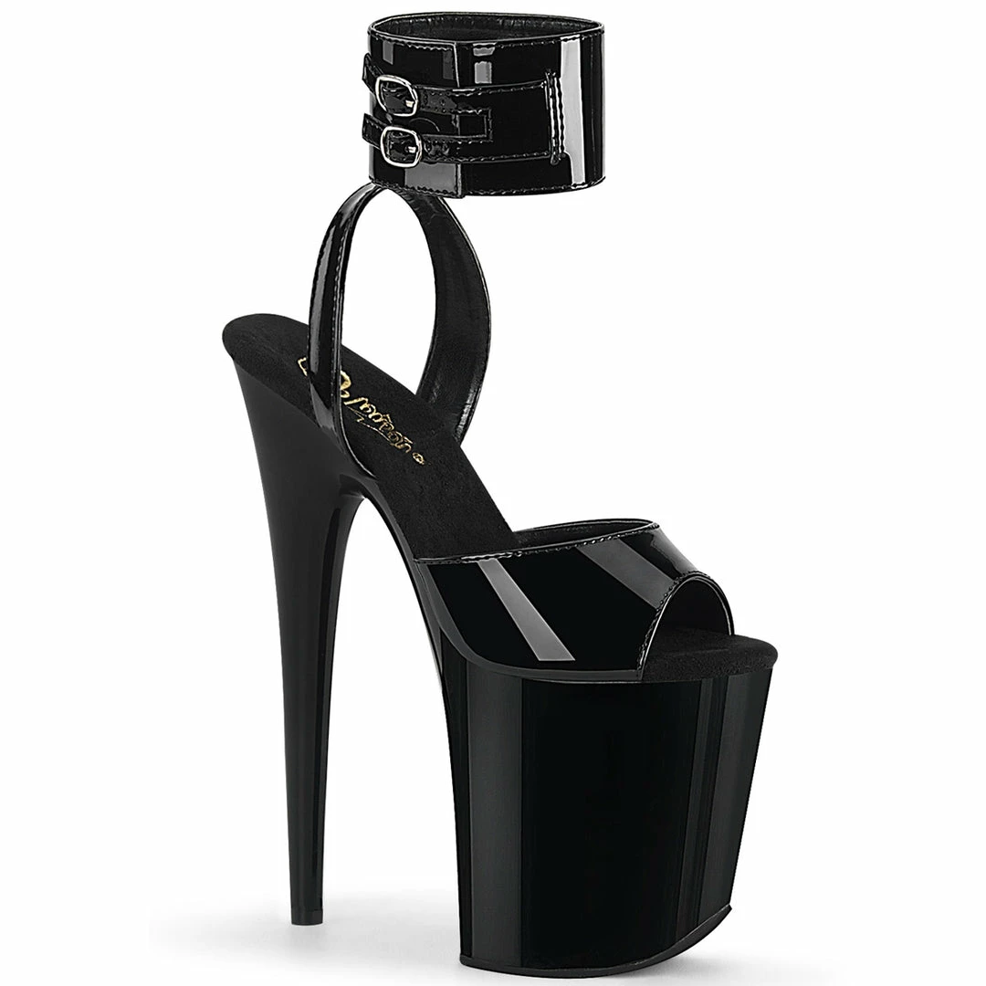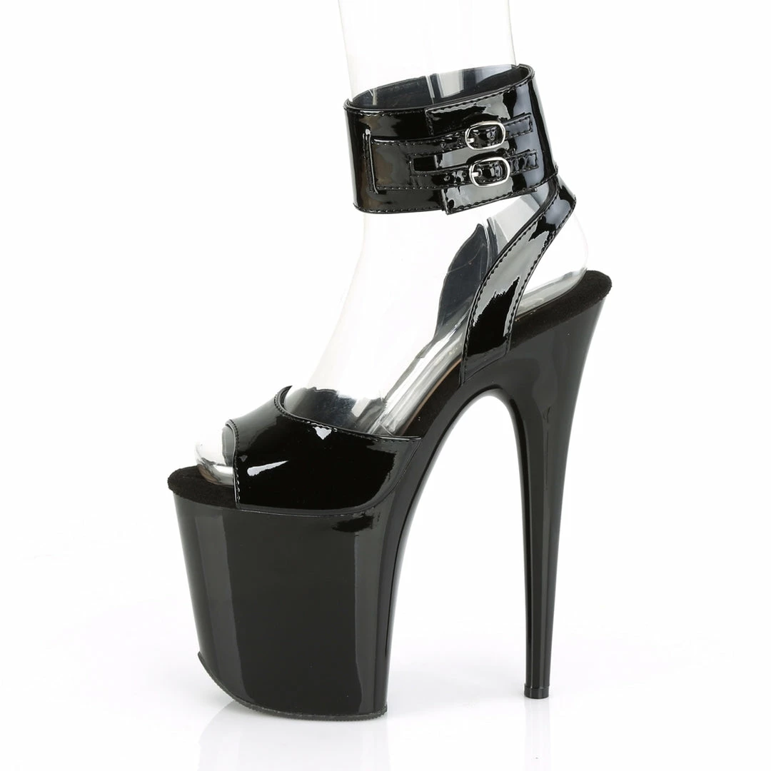8″” (200mm) Heel, 4″” (100mm) Platform Ankle Strap Sandal Featuring Wide Ankle Band w/ Dual Buckle Straps