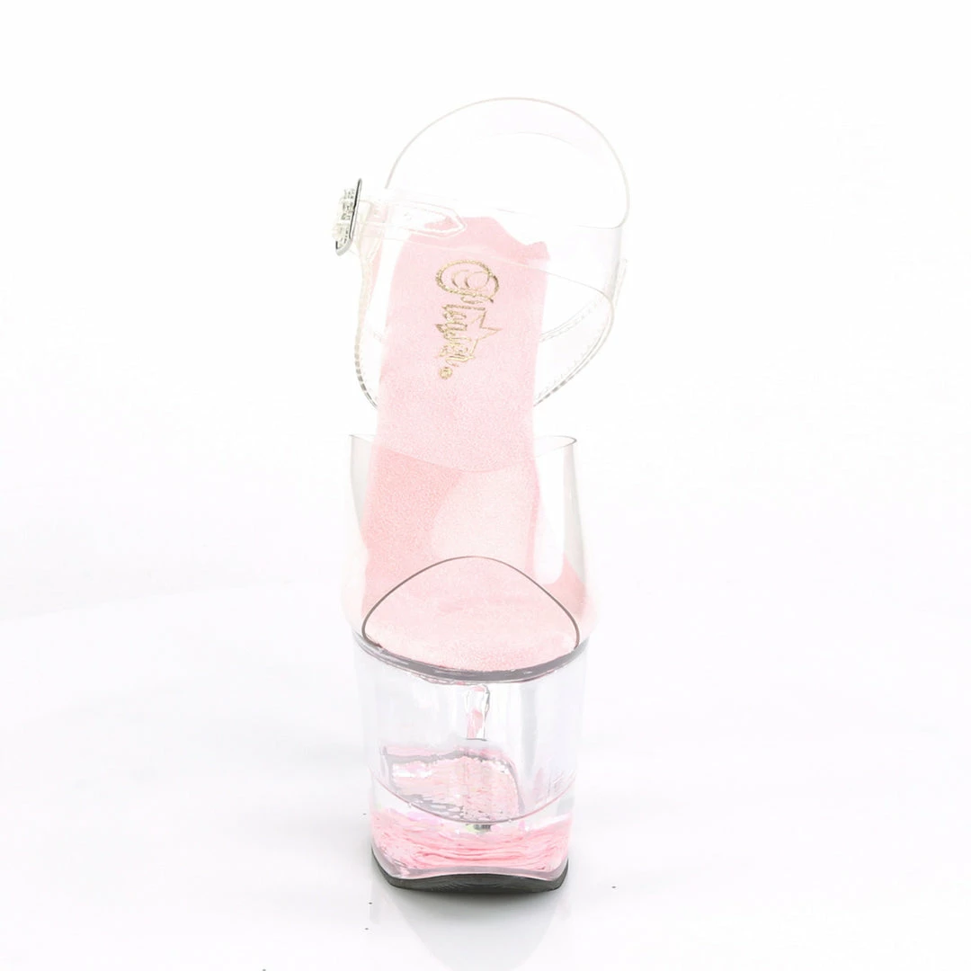 7″ (178mm) Heart Shaped Heel, 3 1/4″ (83mm) Platform Ankle Strap Sandal Featuring the Platform and Heel Infused with Flowing Liquid & Floating Glitter Hearts