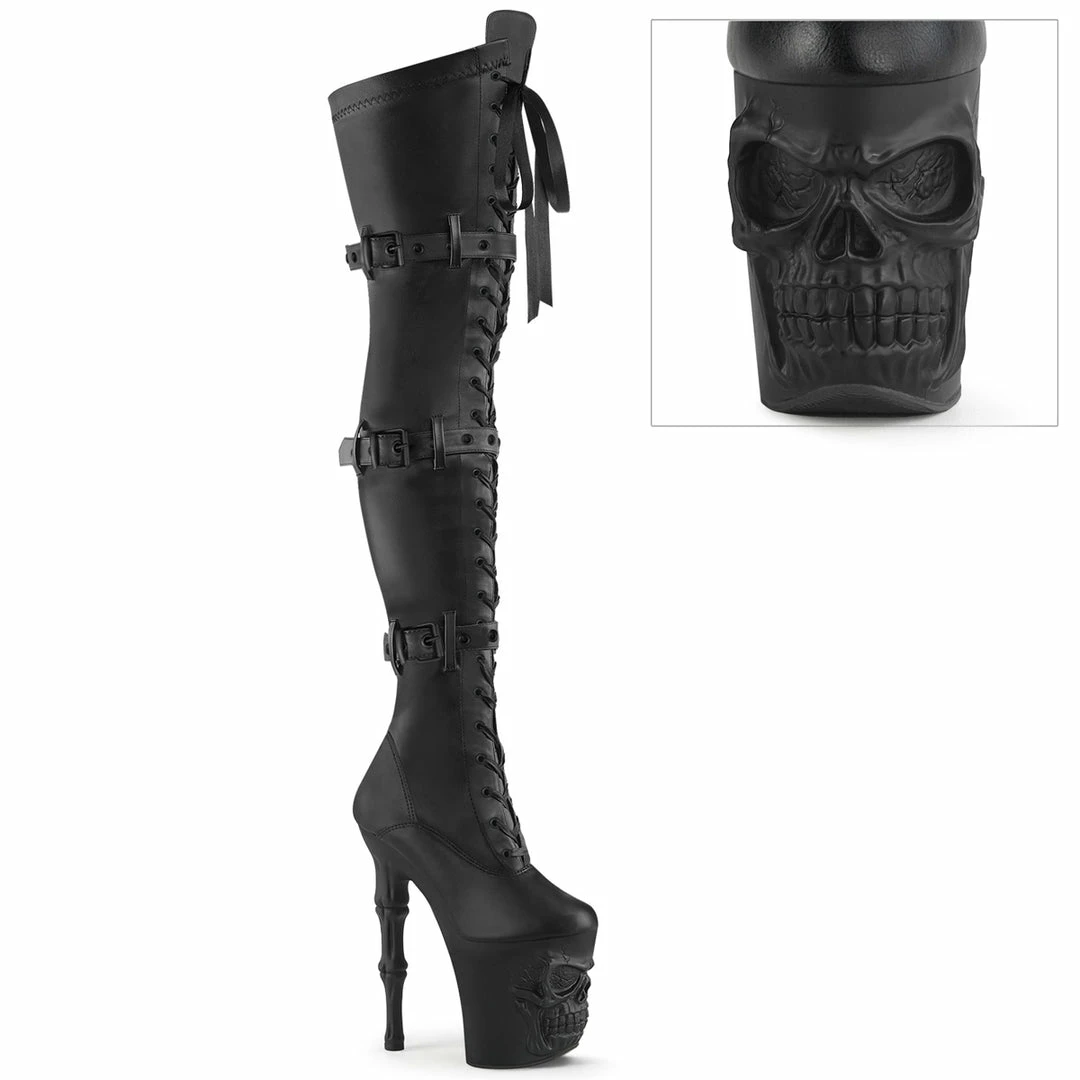8″ Finger Bone Heel, 4″ Skull PF Thigh Boot, Inside Zip