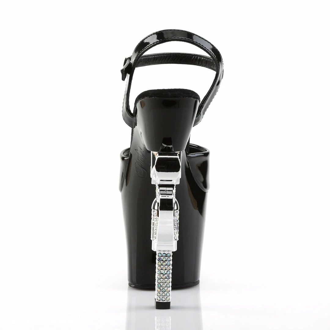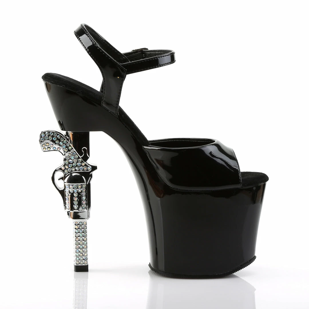7″” (17.8cm) Rhinestone Embellished Gun Heel, 3 1/4″” (8.3cm) Platform Ankle Strap Sandal