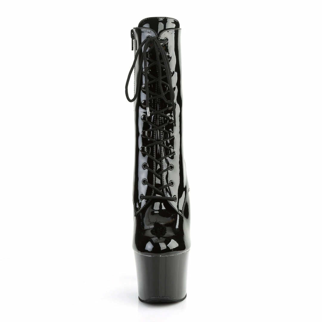 7″” (178mm) Heel, 2 3/4″” (70mm) Platform Front Lace-Up Ankle Boot, Inside Zip Closure