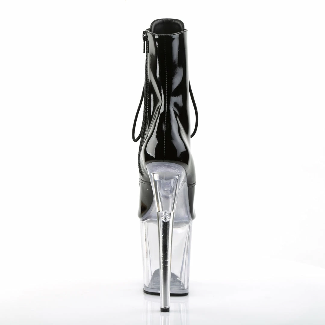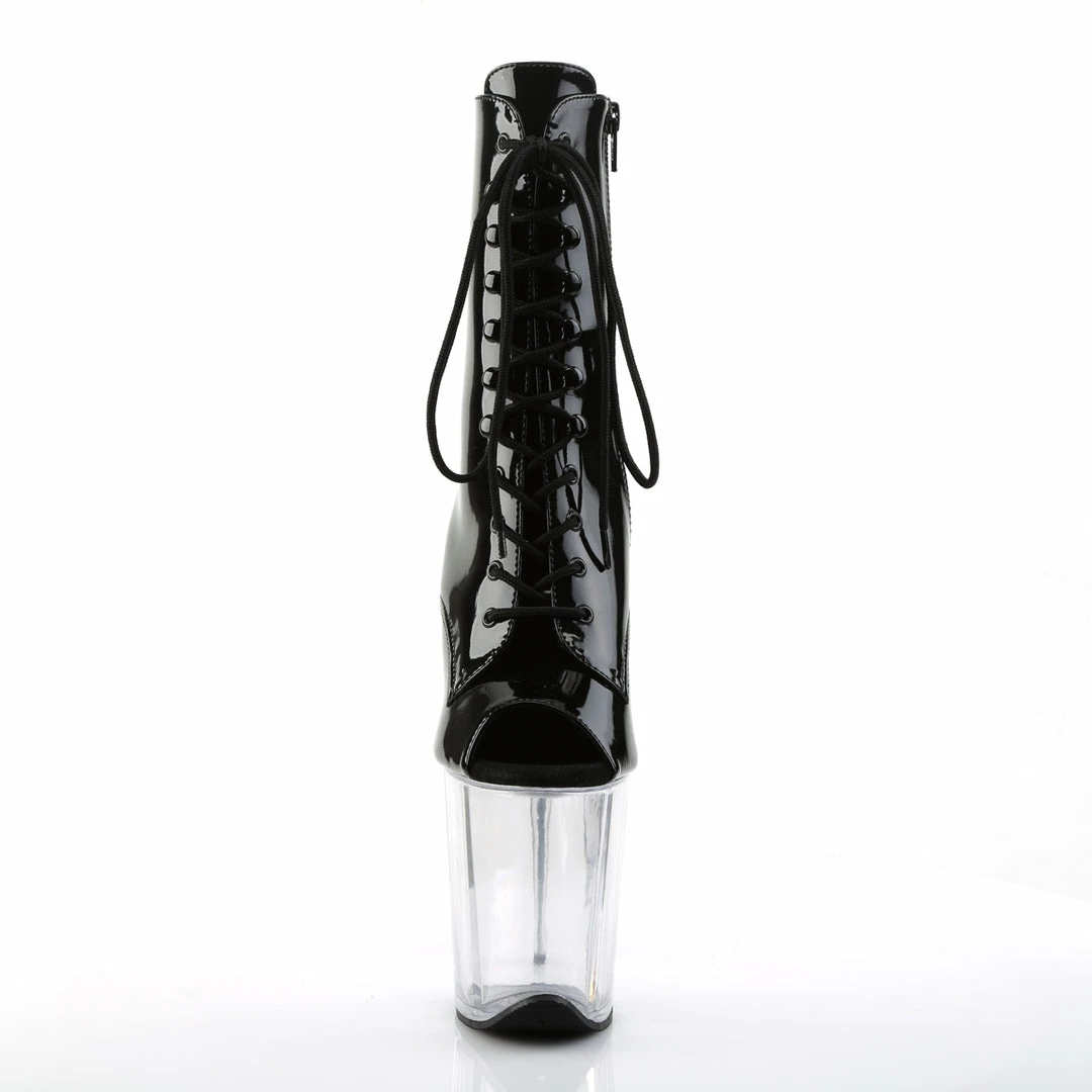 8″” (200mm) Stiletto Heel, 4″” (100mm) Platform Peep Toe Lace-Up Front Ankle Boot, Inside Zip Closure