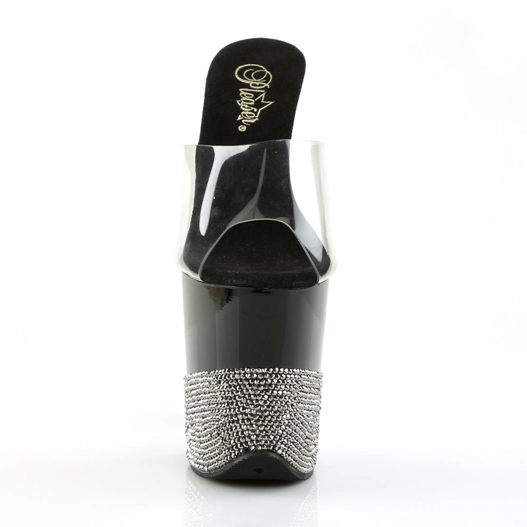 8″” (20.3cm) Stiletto Heel, 4″” (10.2cm) Platform Slide Featuring Rhinestone Encrusted All Over Lower Platform