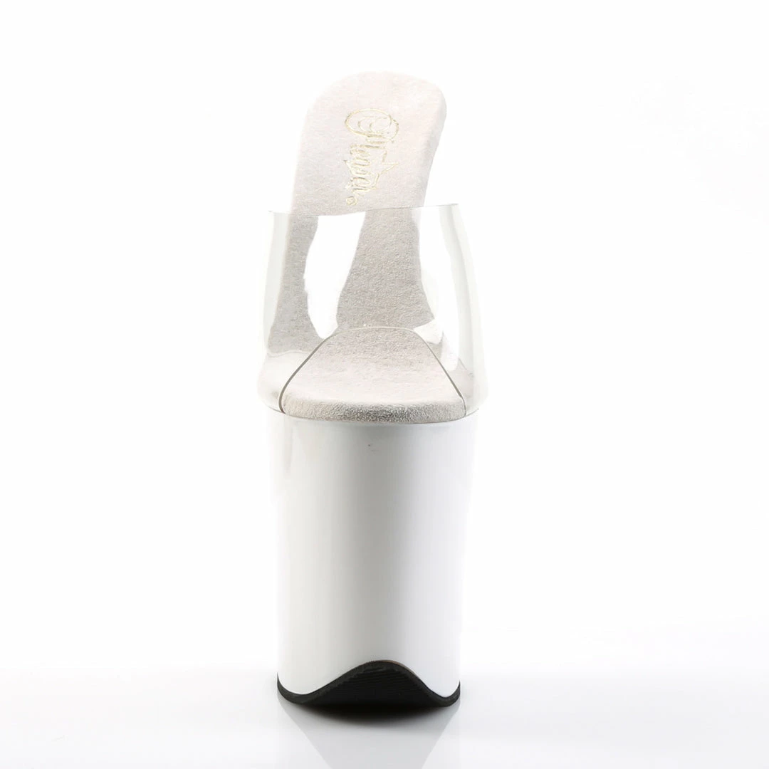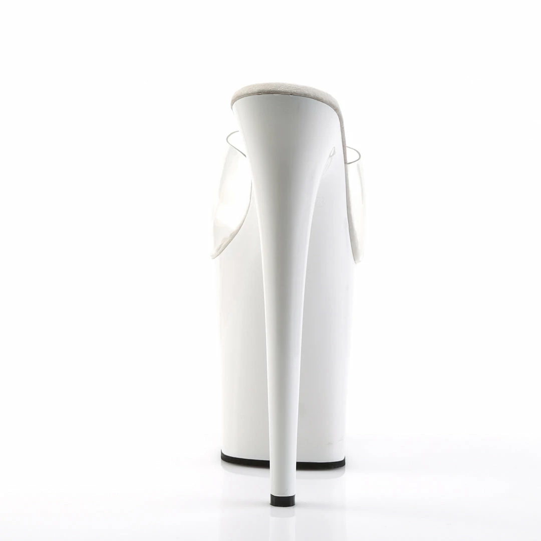 8″” (20.3cm) Stiletto Heel, 4″” (10.2cm) Platform Peep Toe Slide