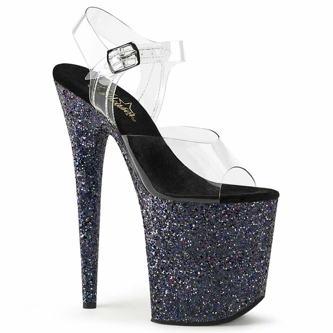 8″” (200mm) Heel, 4″” (100mm) Platform Ankle Strap Sandal Featuring the Entire Platform Bottom Covered w/ Glitters