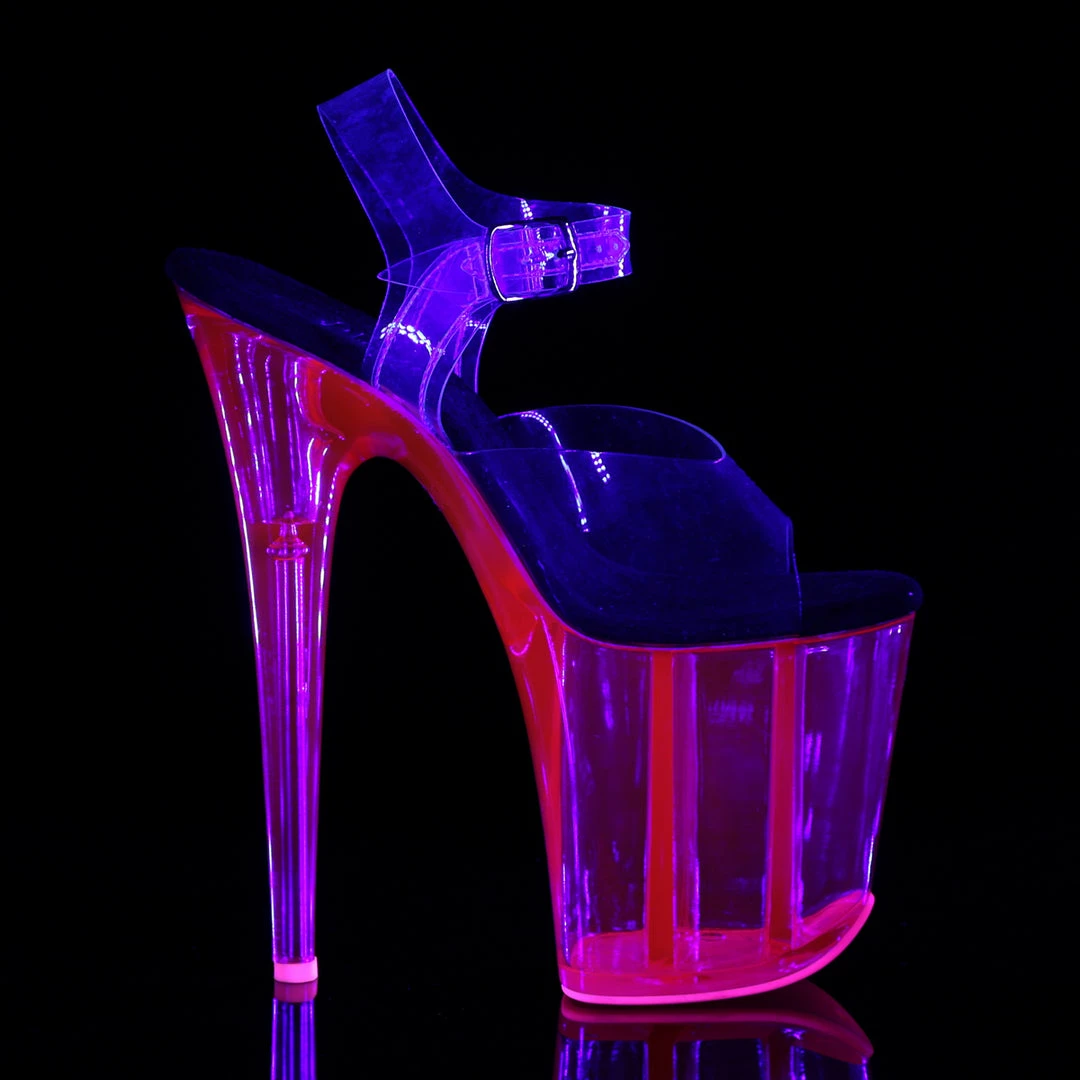 8″” (203mm) Heel, 4″” (102mm) Platform Ankle Strap Sandal Featuring Blacklight Reactive Tinted Bottom and Outsole/Toplift