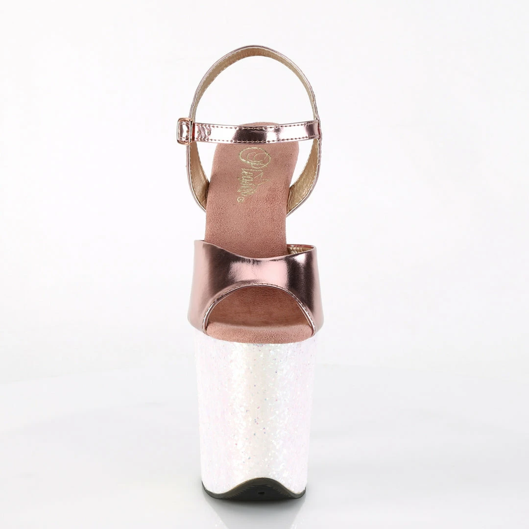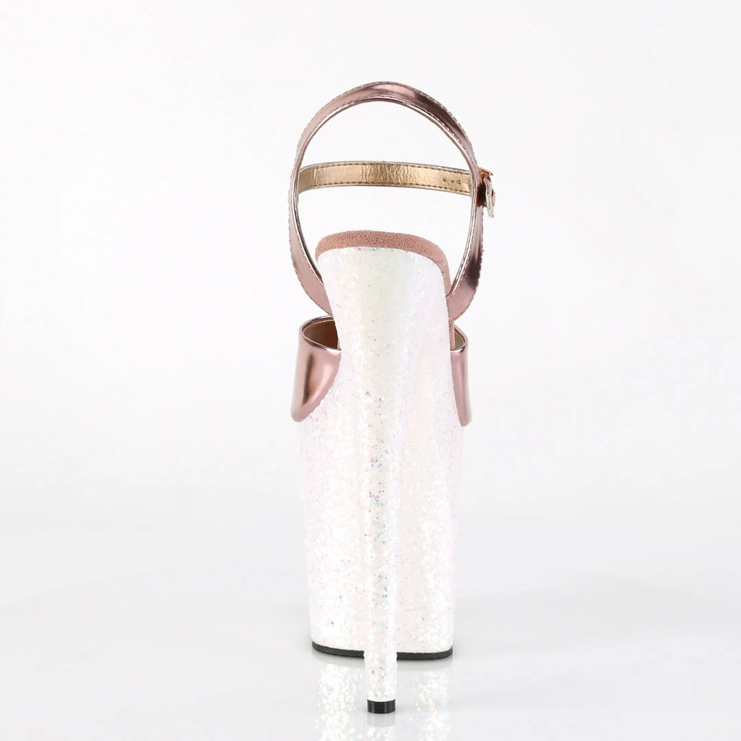 Pleaser FLAMINGO-809LG – Rose Gold Metallic Pu/Opal Multi Glitter