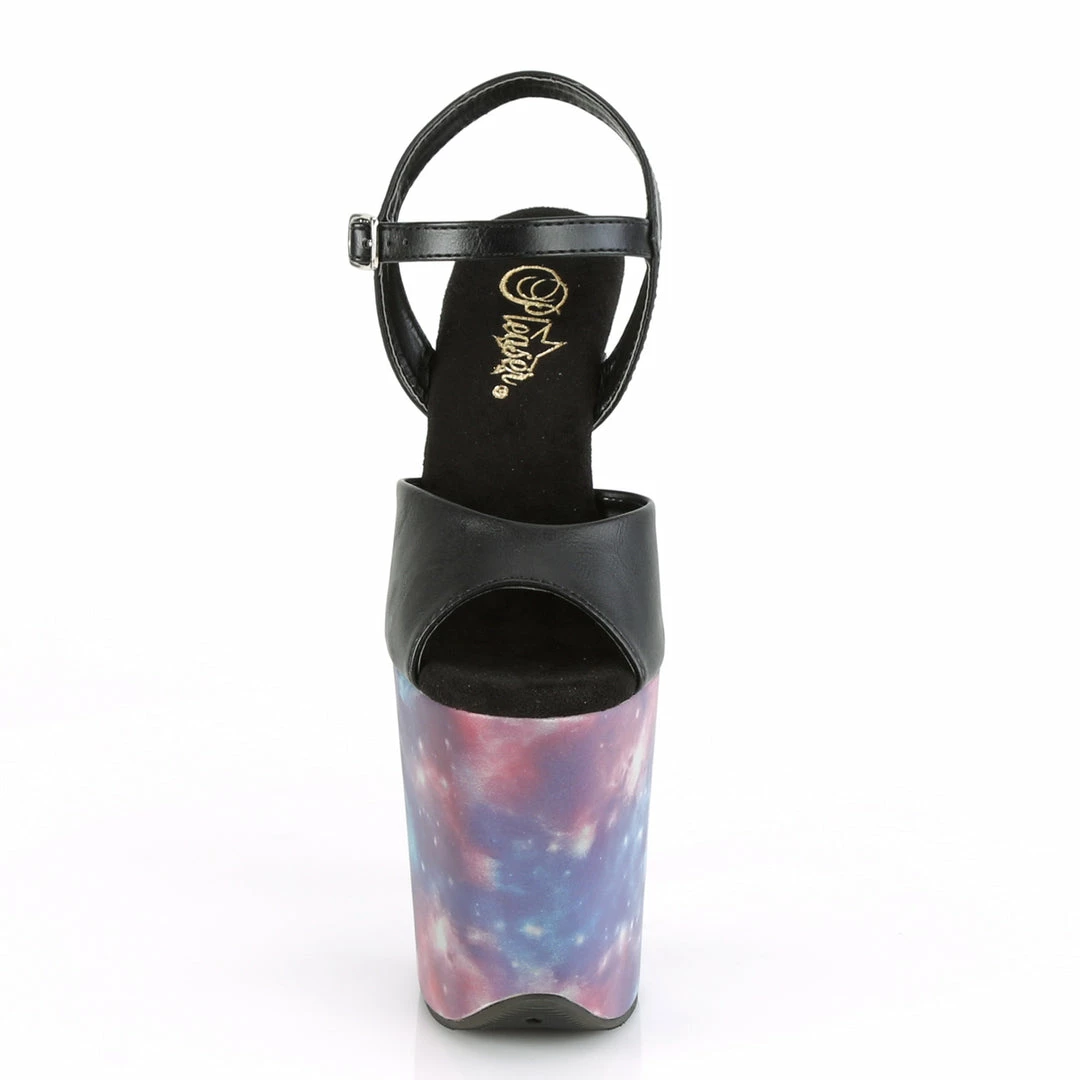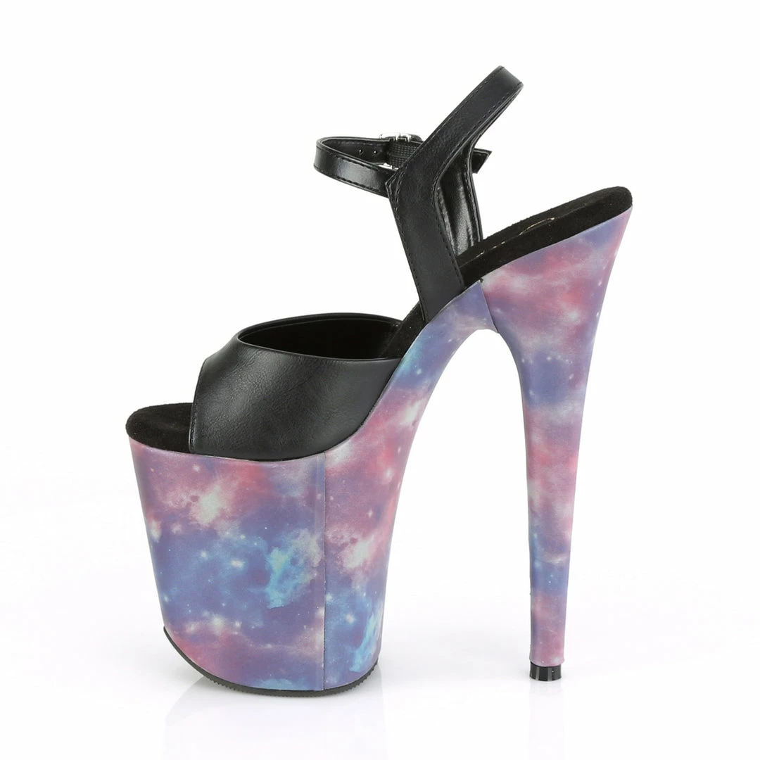 8″” (200mm) Heel, 4″” (100mm) Platform Ankle Strap Sandal Featuring Reflective Galaxy Effect Wrapped Platform Bottom
