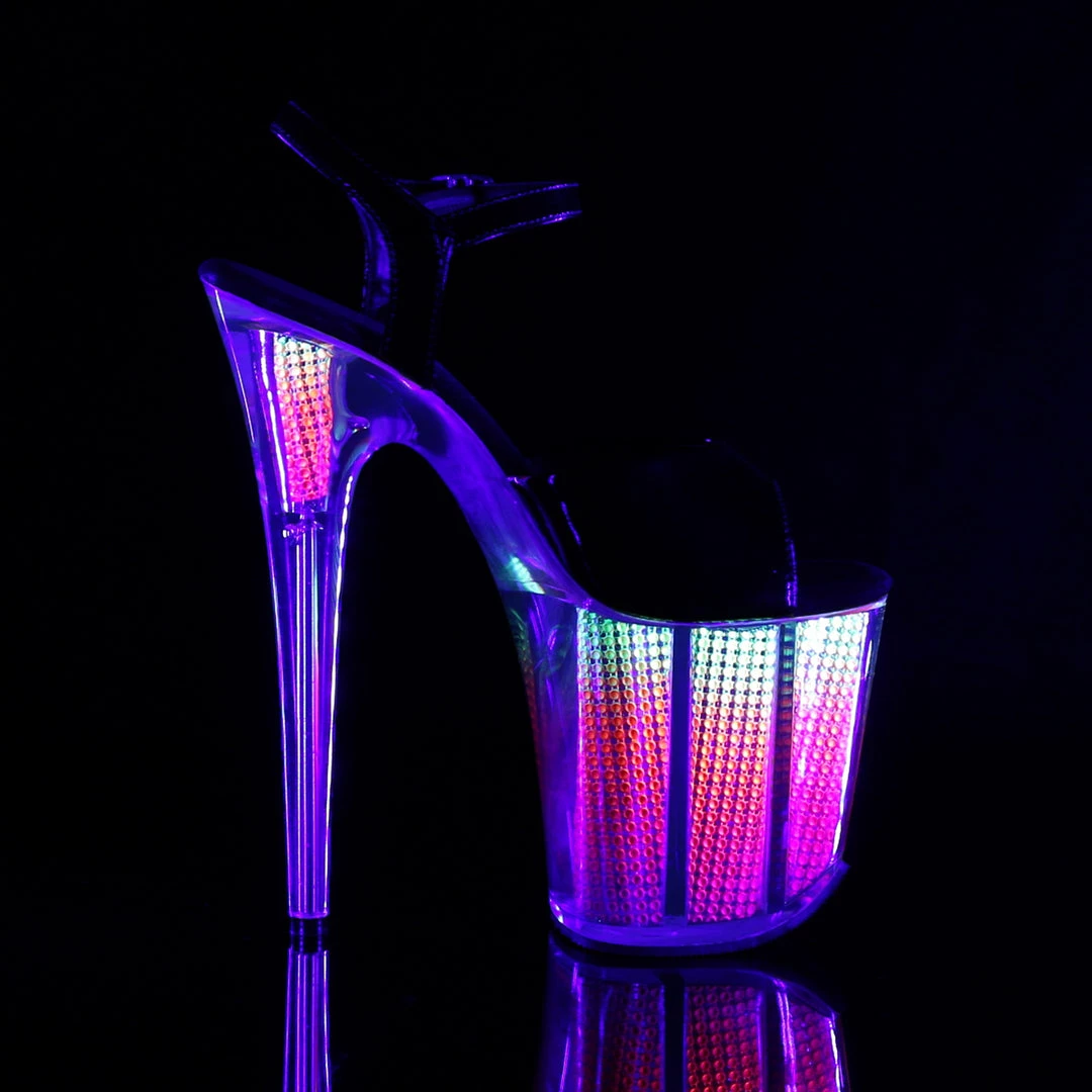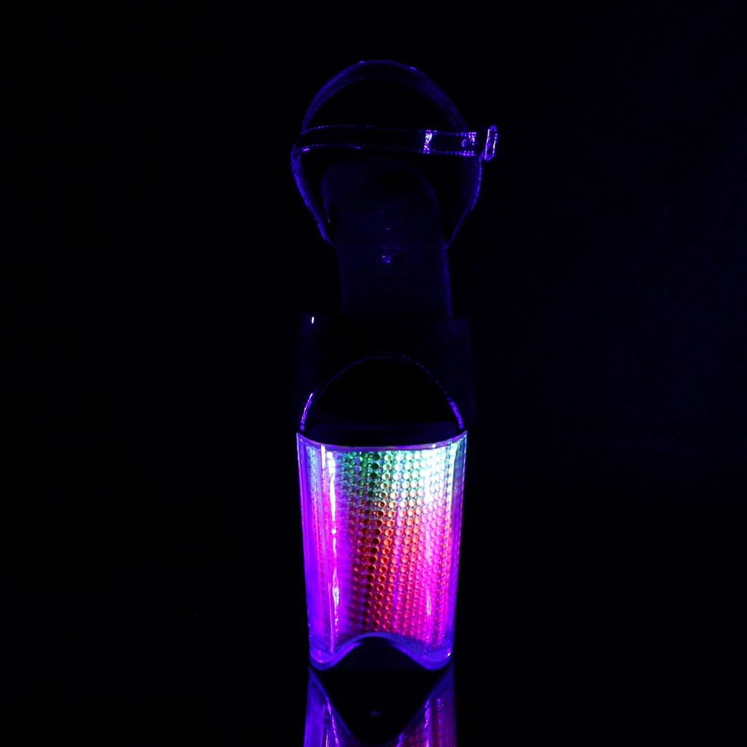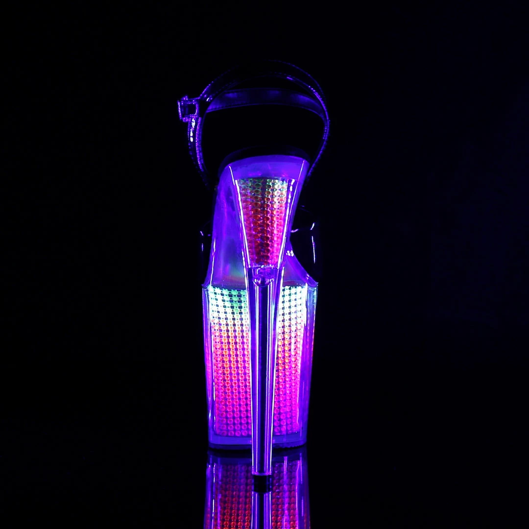 8″” (20.3cm) Stiletto Heel, 4″” (10.2cm) Platform Ankle Strap Sandal Featuring Neon, Simulated Rhinestone Filled Platform