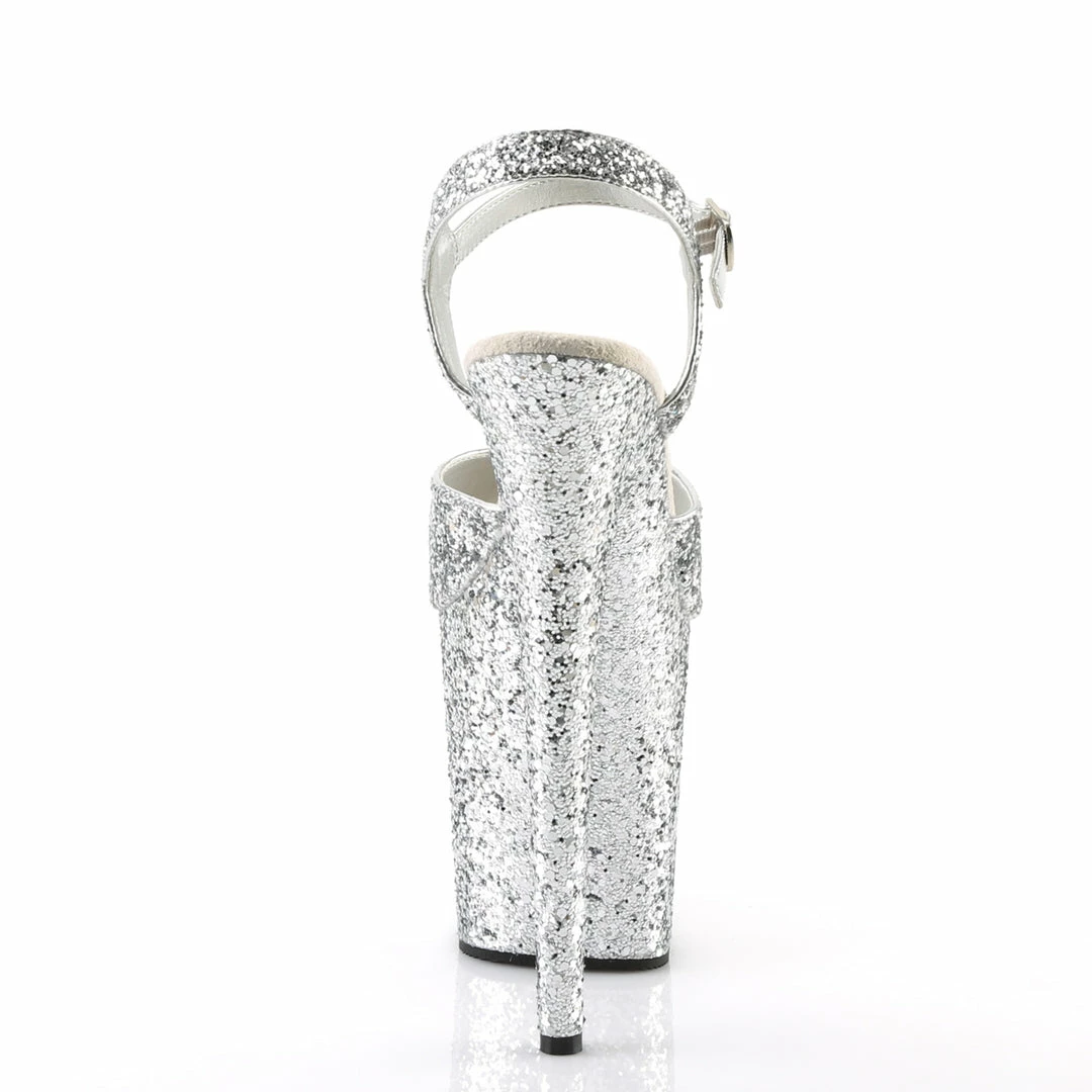 8″” (200mm) Heel, 4″” (100mm) Platform Glitter Ankle Strap Sandal