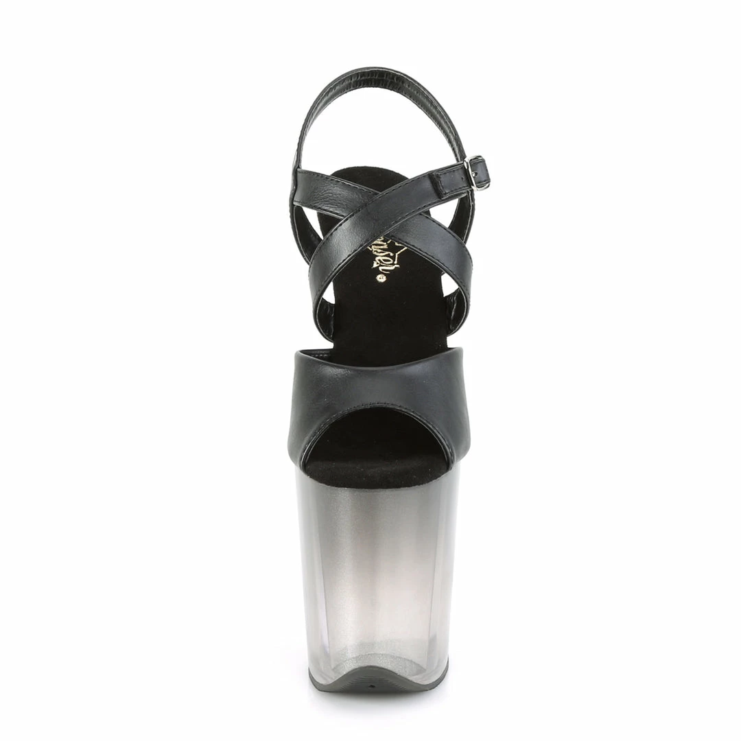 8″” (200mm) Heel, 4″” (100mm) Platform Criss-Cross Ankle Strap Sandal Featuring Faded Color Platform Bottom