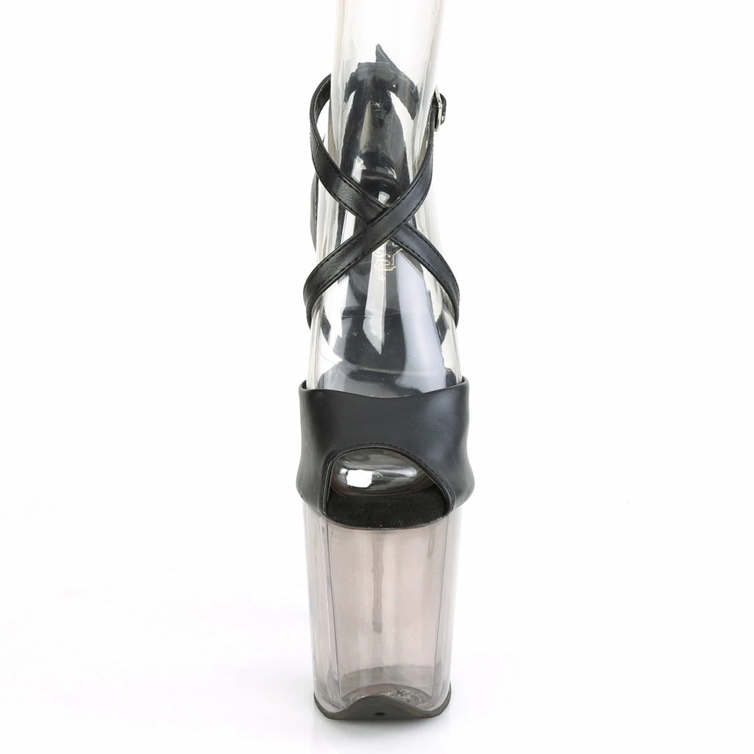 8″ (200mm) Heel, 4″ (100mm) Tinted Platform Peep Toe Close Back Sandal Featuring Long Criss Cross Strap Wrapping Around the Instep & Platform Bottom