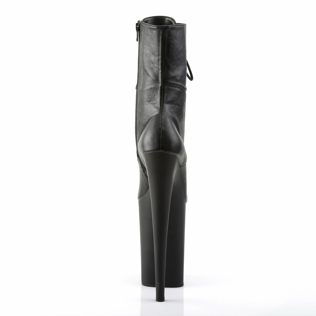 9″ (22.9cm) Heel, 5 1/4″ (13.3cm) Platform Front Lace-Up Ankle Boot Full Inner Side Zipper Warning: Extreme High Heels. Not Recommended for Walking or Dancing. Black Faux Leather