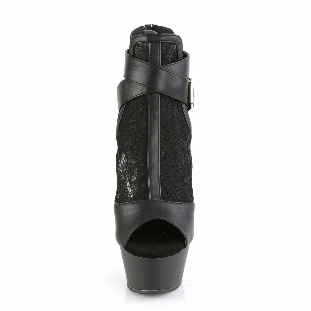 Pleaser KISS-257 – Blk Faux Leather-Lace-Mesh/Blk Matte Exotic Dancing