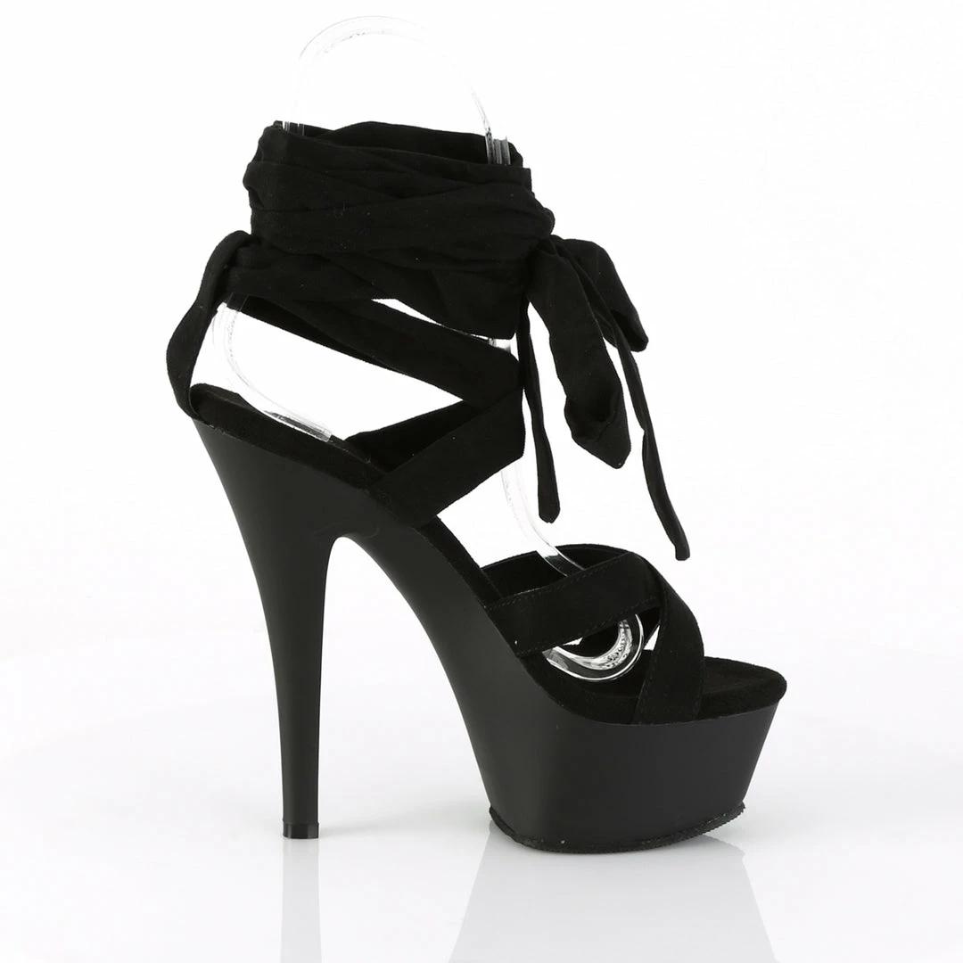 6″” (152mm) Heel, 1 3/4″” (45mm) Platform Strappy Criss Cross Leg-Wrap Sandal Featuring Lace-Up Front Wraps to the knees