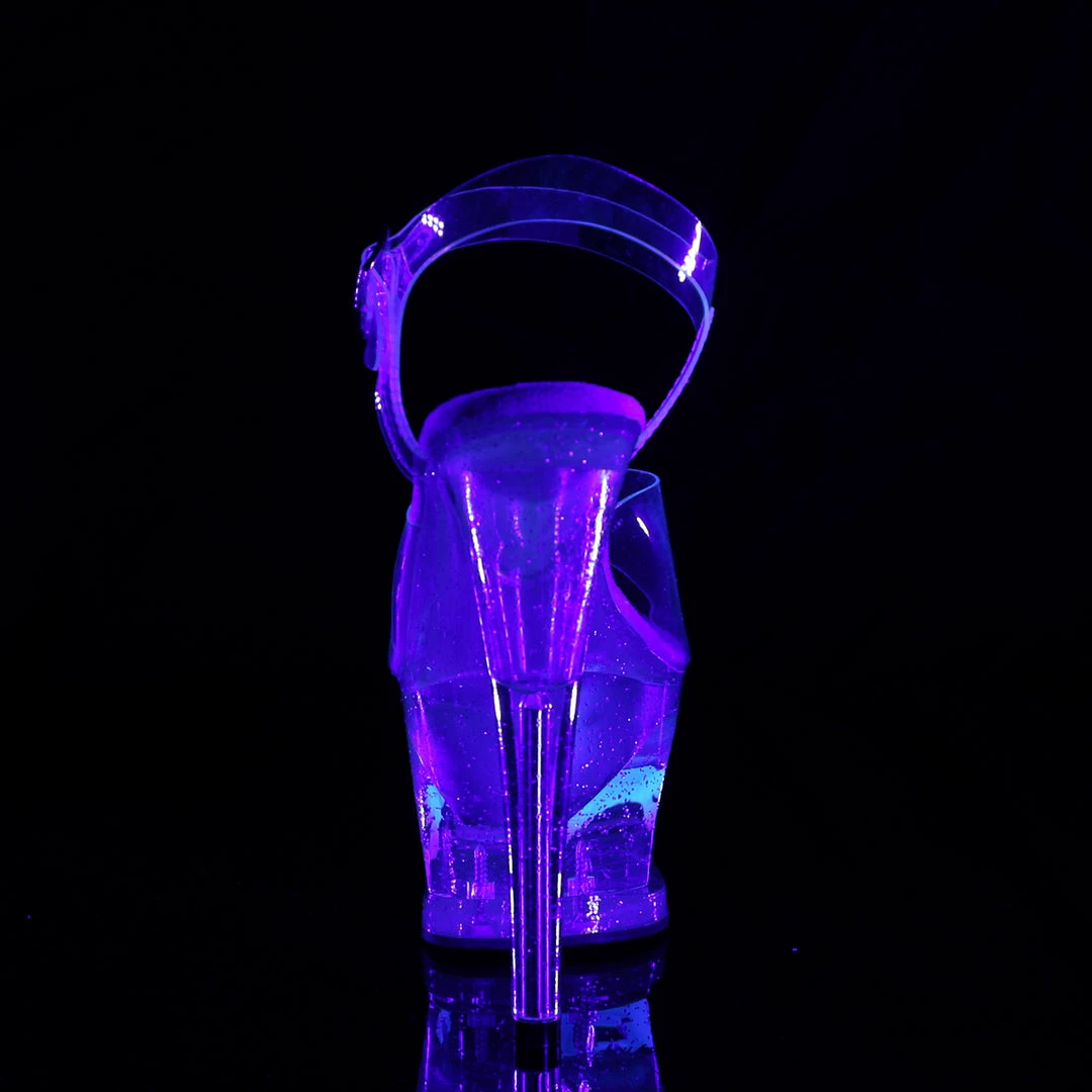 7″ (178mm) Heel, 2 3/4″ (70mm) Cut-Out Platform Ankle Strap Sandal Featuring Blacklight Reactive Ombre Mermaid in the Platform and Mini Iridescent Glitters on the Platform Bottom