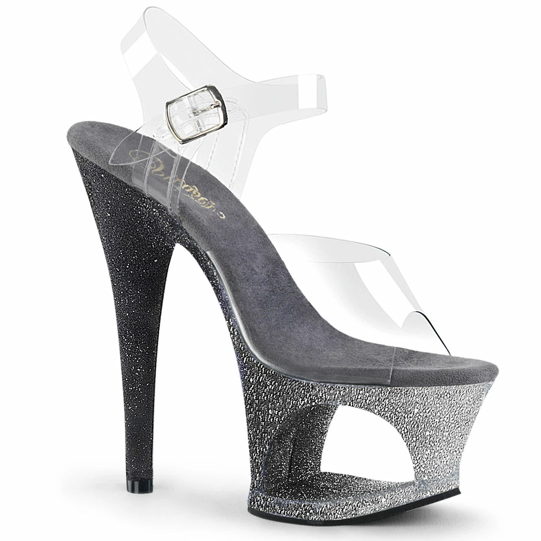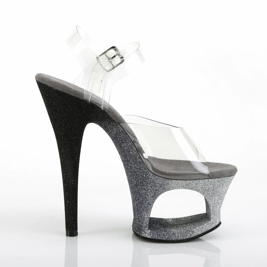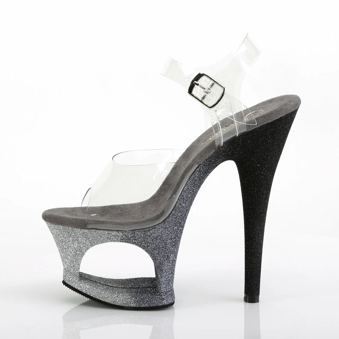 Pleaser MOON-708OMBRE – Clr/Slv-Blk Ombre
