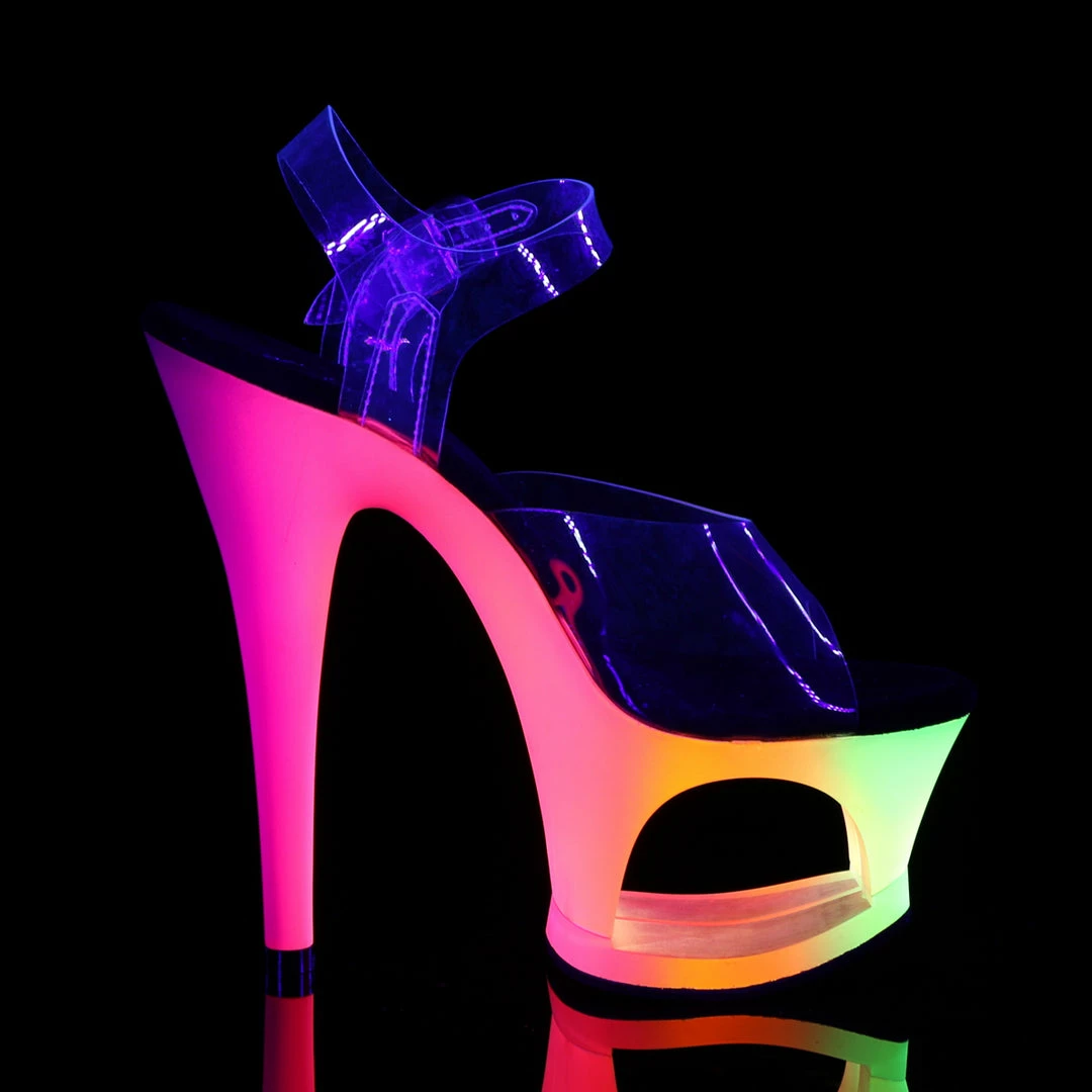 7″ (178mm) Heel, 2 3/4″ (70mm) Cut-Out Platform Ankle Strap Sandal Featuring UV Blacklight Reactive Multi-coloured Platform Bottom