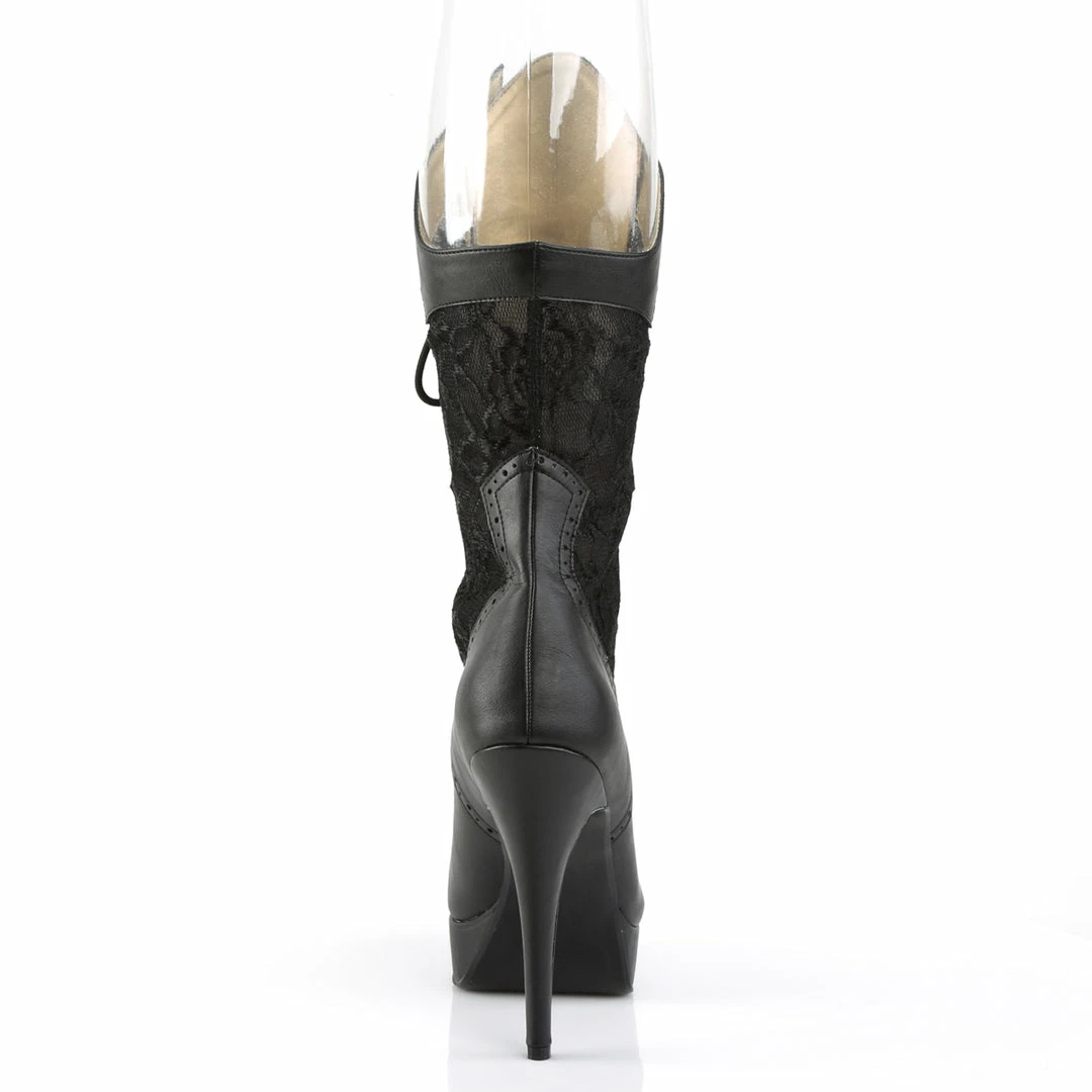 5 1/4″” (13.3cm) Heel, 1 1/4″” (3.2cm) Platform Wide Width/Shaft, Calf High Boot, No Zipper