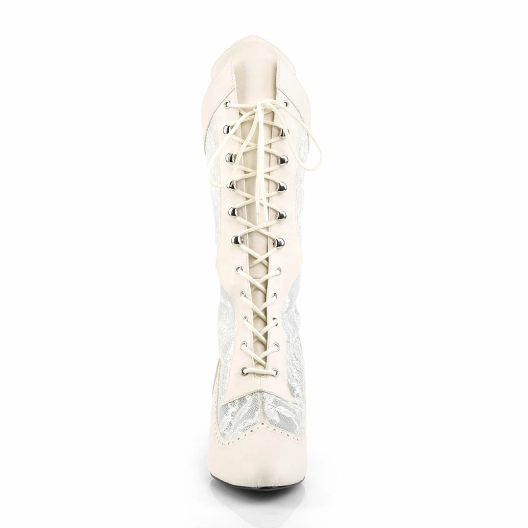 Pleaser Pink Label DIVINE-1050 – Ivory Faux Leather-Satin Lace