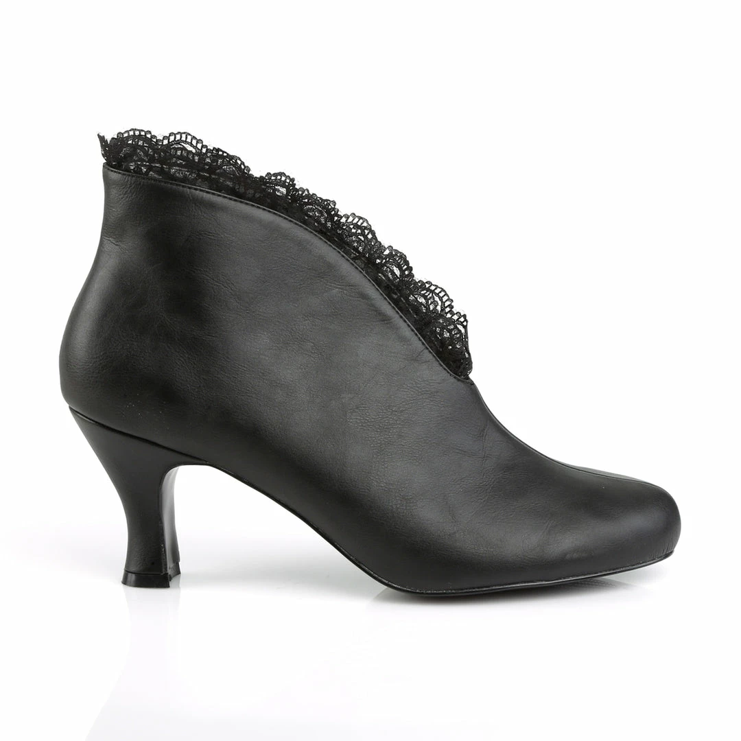 3″” (7.6cm) Heel Slip-on Ankle Boot with Lace Overlay, No Zipper