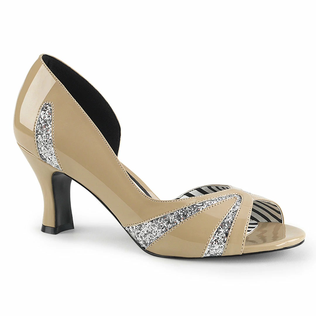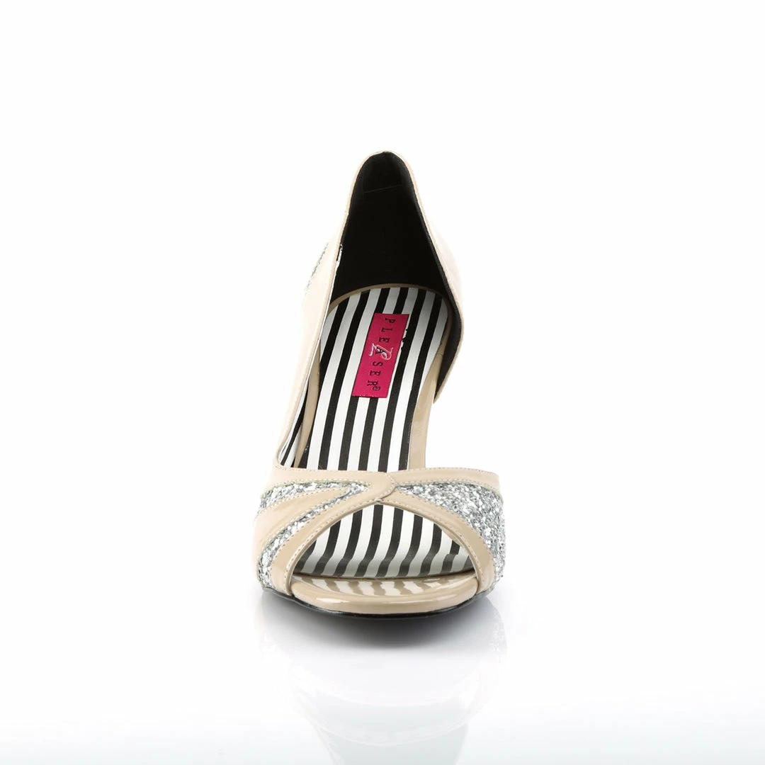 Pleaser Pink Label JENNA-03 – Cream Pat-Silver Glitter