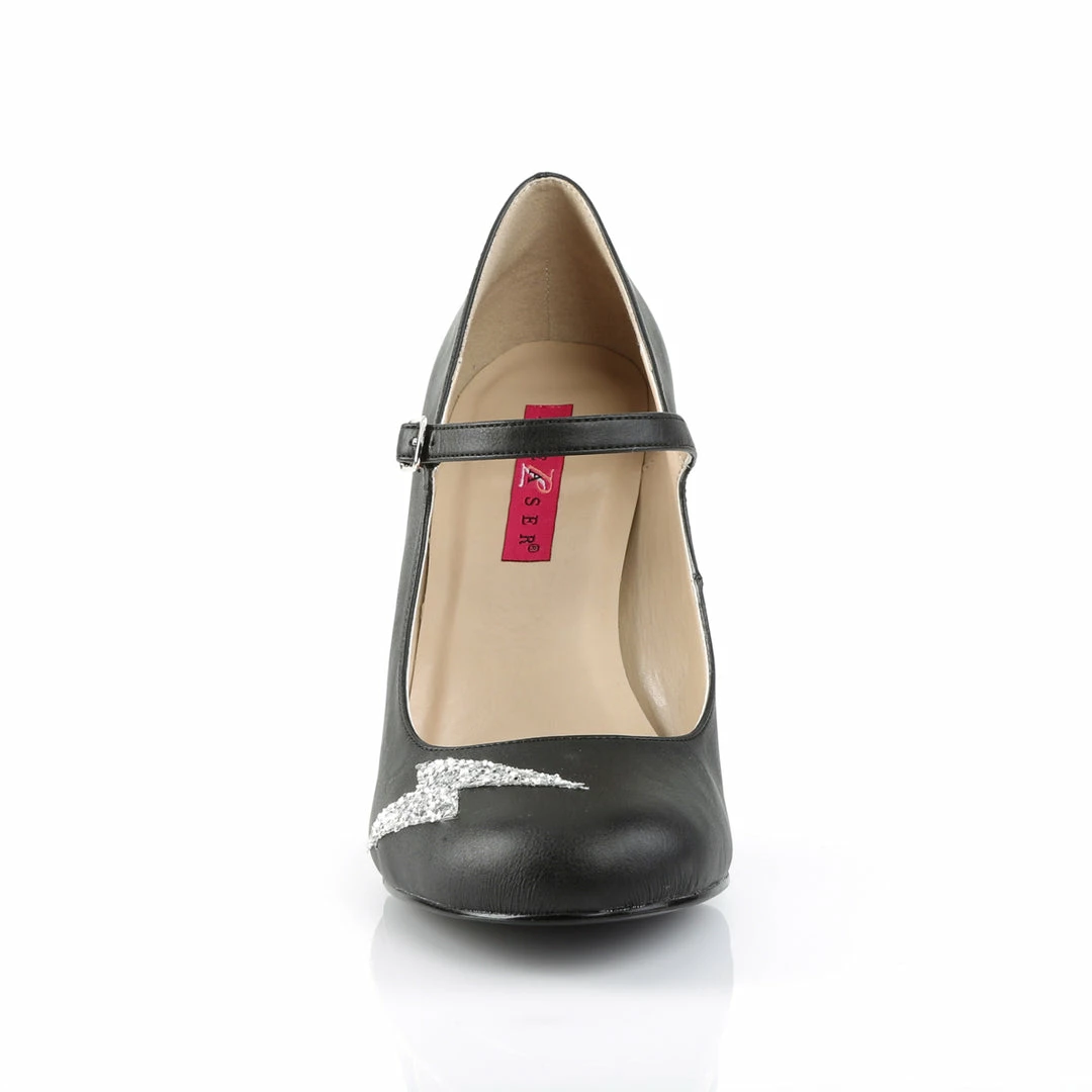 4″” (10.2cm) Heel, Round Toe Mary Jane Pump with Lightning Bolt Silver Glitter & Chunky Heel