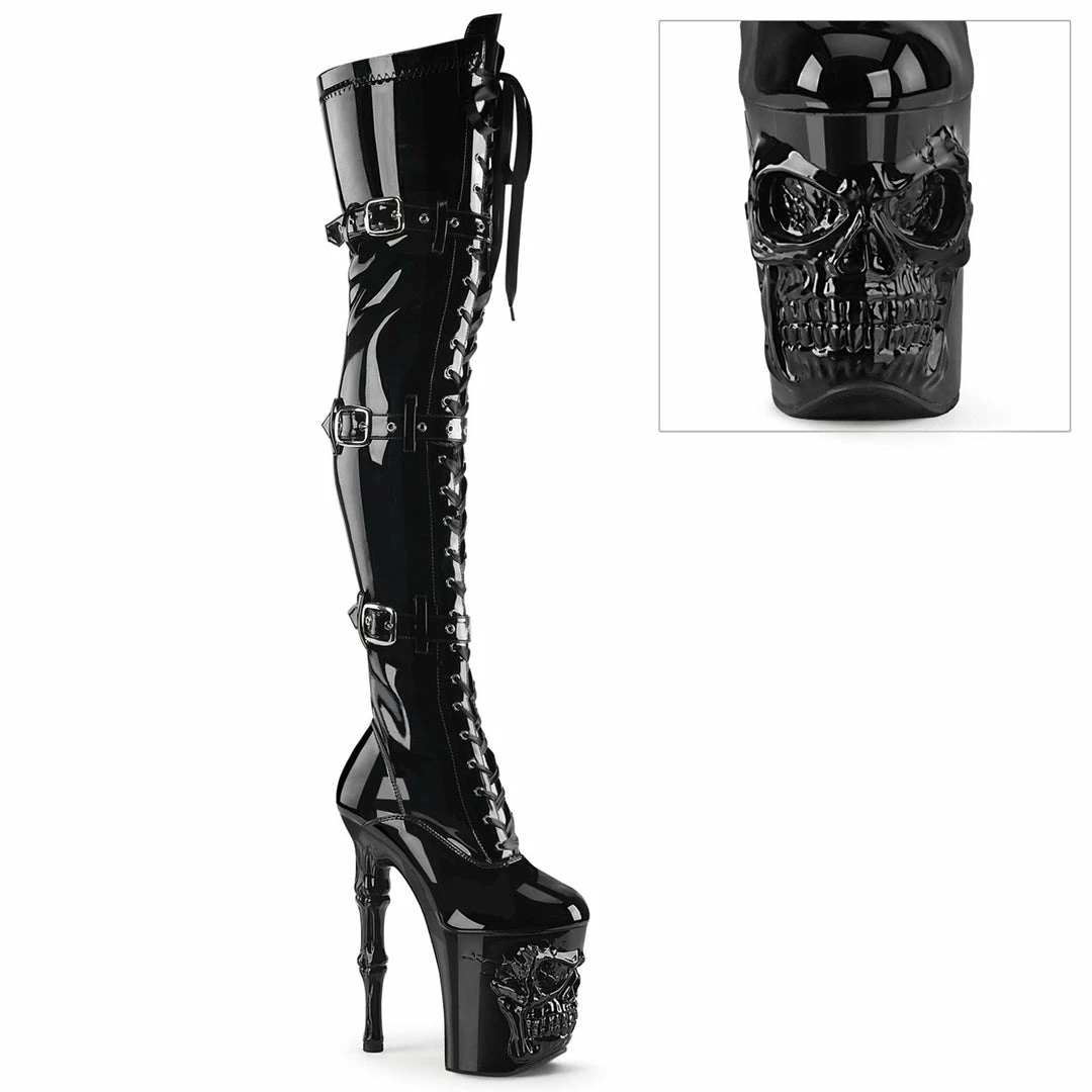 8″ Finger Bone Heel, 4″ Skull PF Thigh Boot, Inside Zip