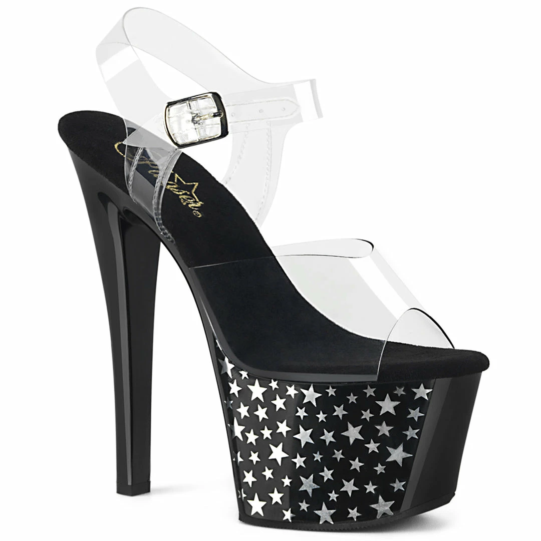 Pleaser SKY-308CP-1 – Clr/Blk-Slv Chrome