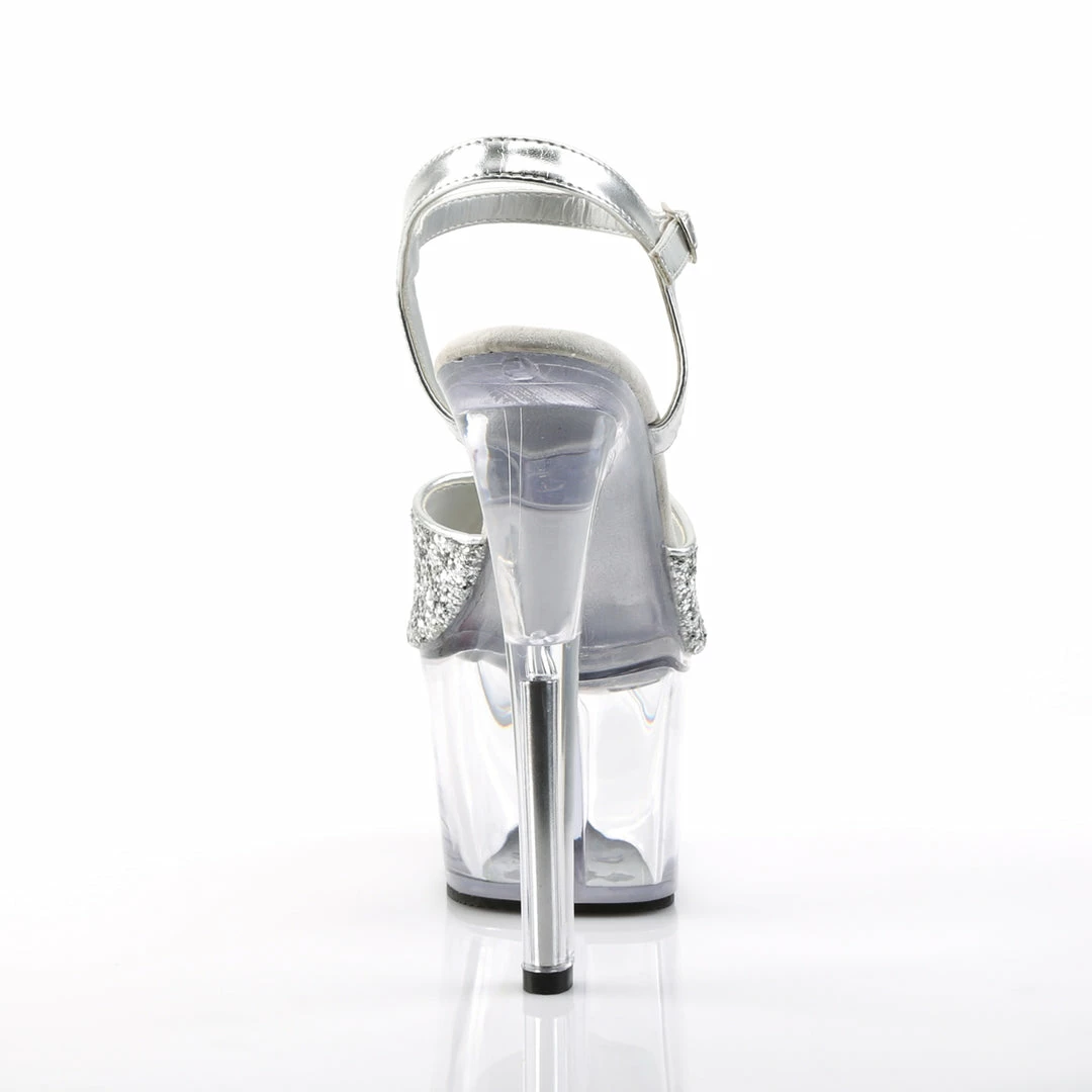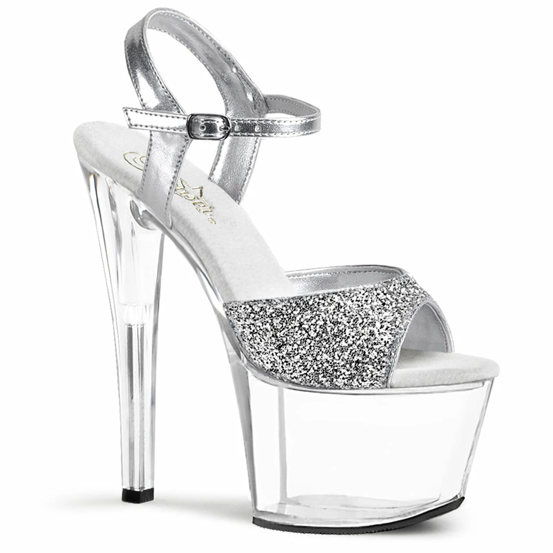 7″” (17.8cm) Heel, 2 3/4″” (7cm) Platform Ankle Strap Sandal with Glitter Upper