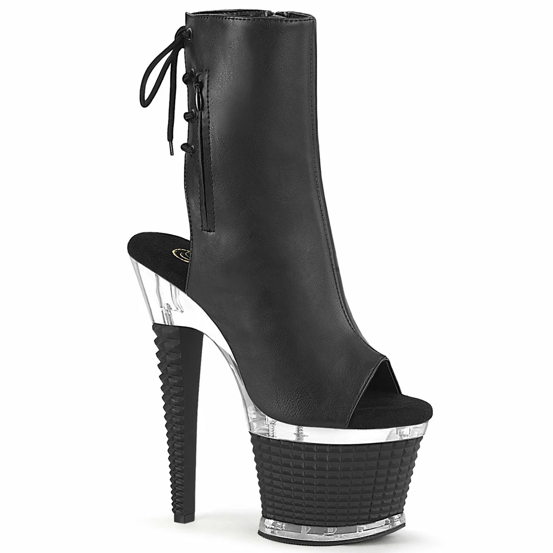 Pleaser SPECTATOR-1018 – Blk Faux Leather/Clr-Blk Matte