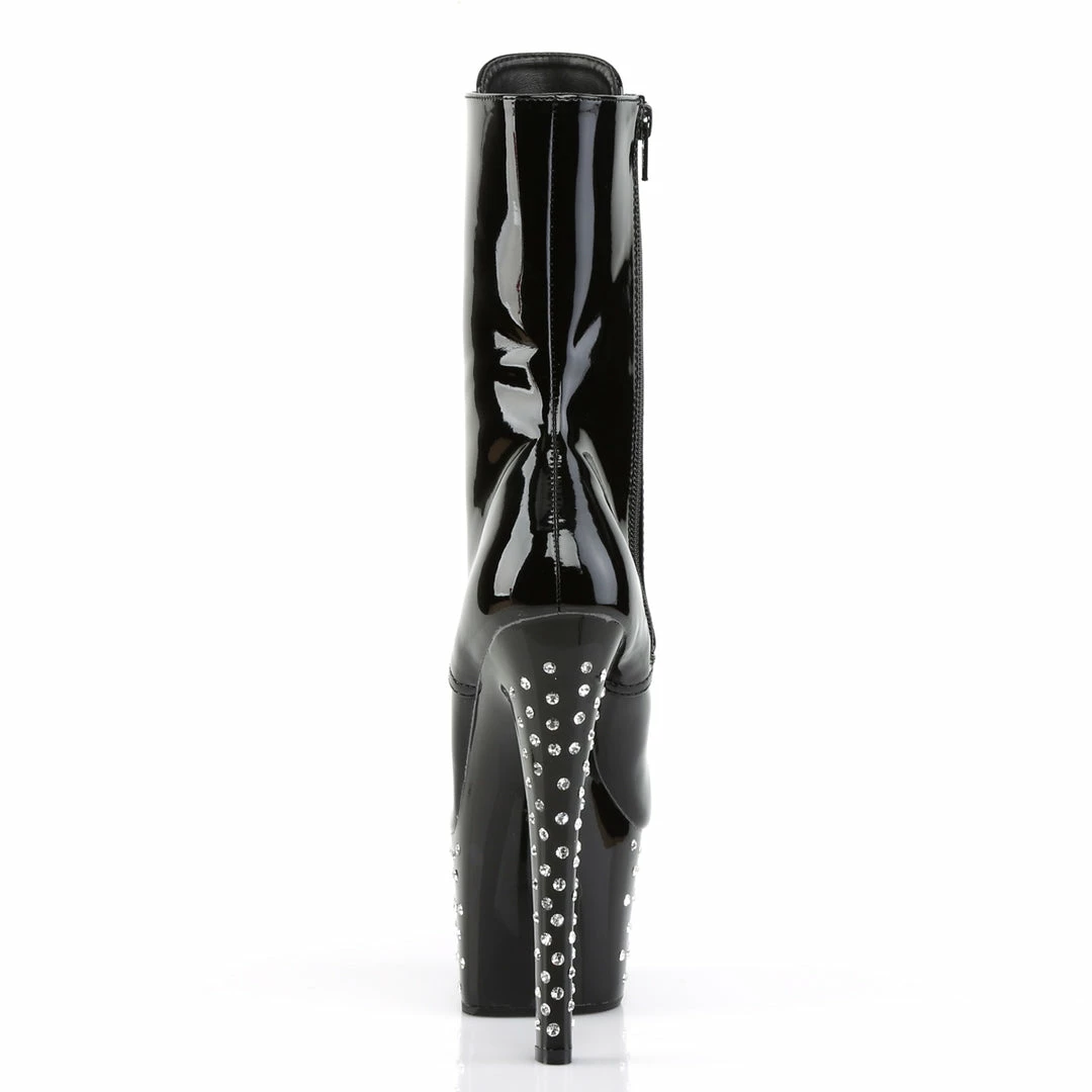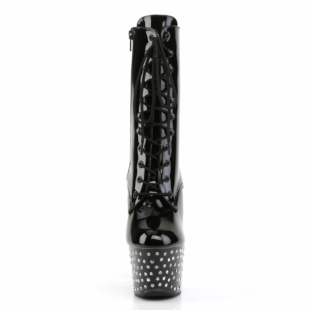 7″” (17.8cm) Heel, 2 3/4″” (7cm) Platform Front Lace-Up Ankle Boot Featuring Rhinestones Studded on Platform