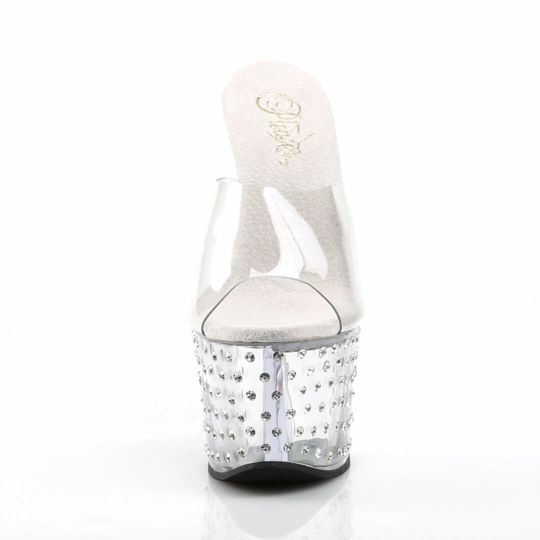 7″” (17.8cm) Heel, 2 3/4″” (7cm) Platform Slide with Rhinestone Studded Platform