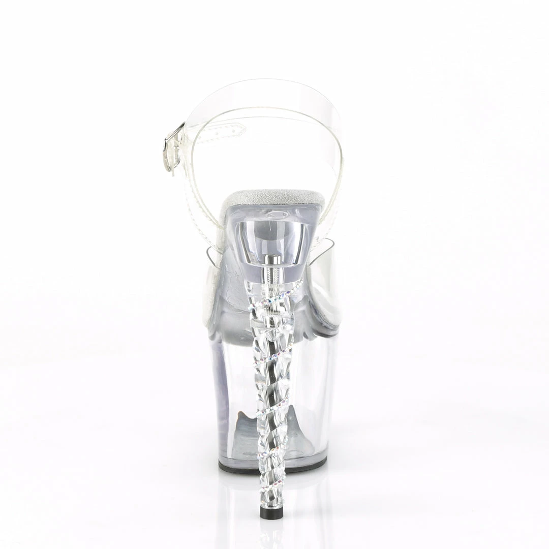 7″” (178mm) Unicorn Heel, 3 1/4″” (83mm) Platform Ankle Strap Sandal Featuring Spiral AB Rhinestone Lined Heel