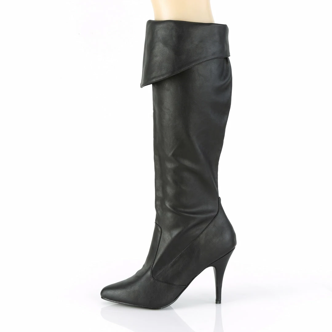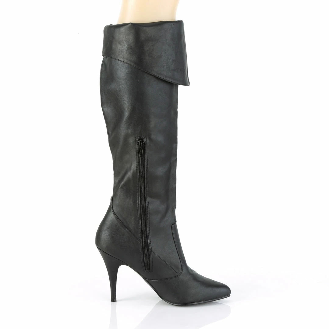 4″” (100mm) Heel, Pull-On Cuffable Knee High Boot, 1/2 Inside Zip Closure