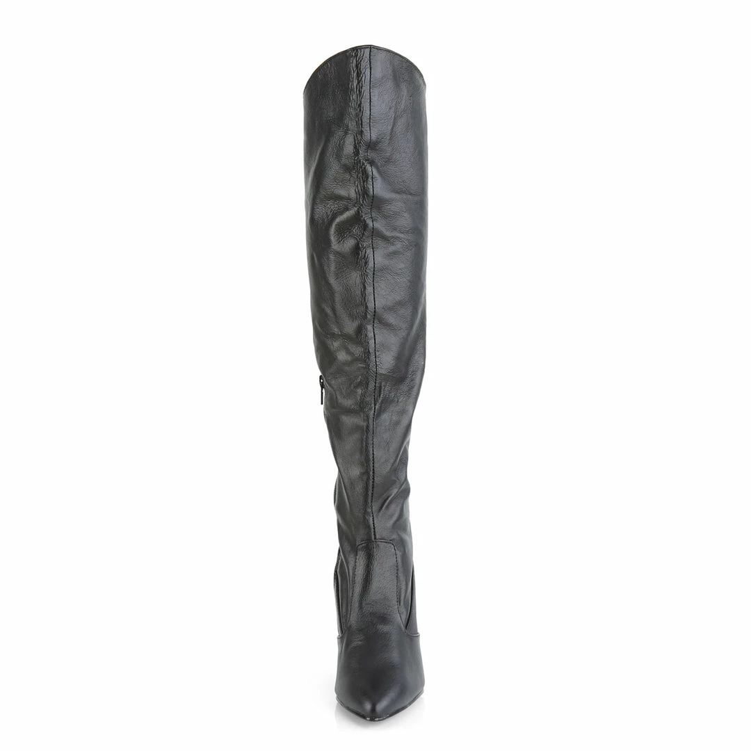 4″” (10.2cm) Heel, Pull On Cuffed Knee Boot, Half Side Zipper