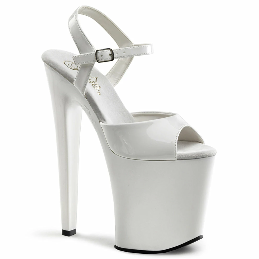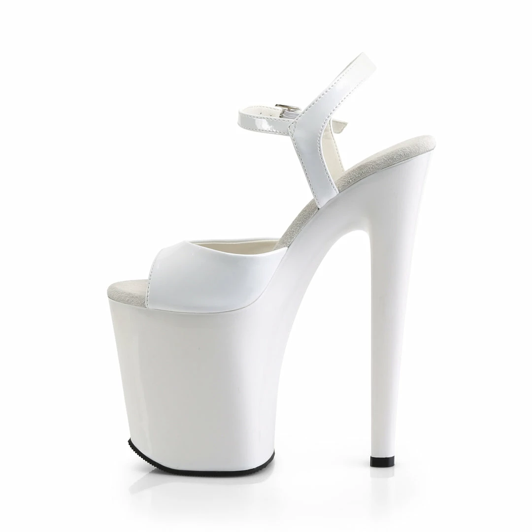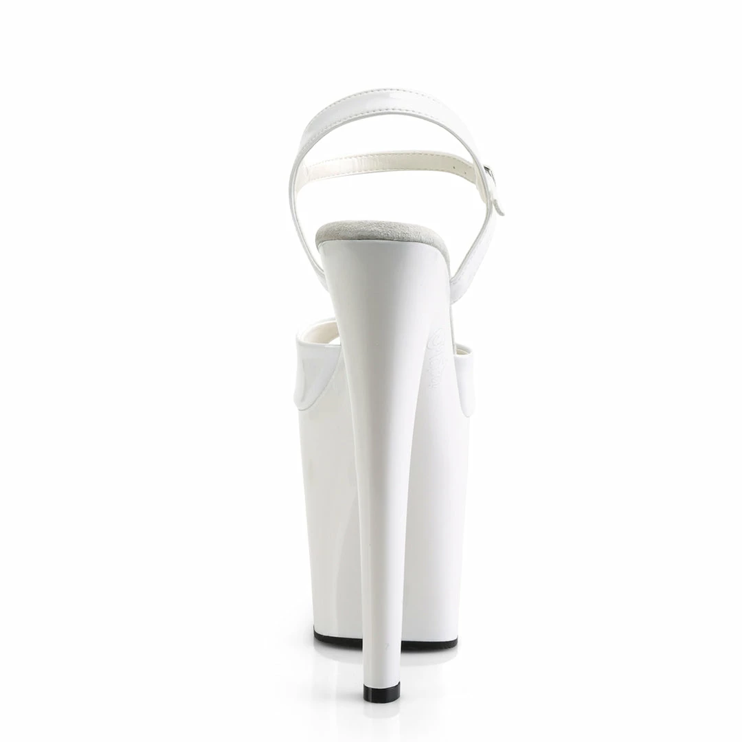 8″” (20.3cm) Heel, 4″” (10.2cm) Platform Ankle Strap Peep Toe Sandal, White